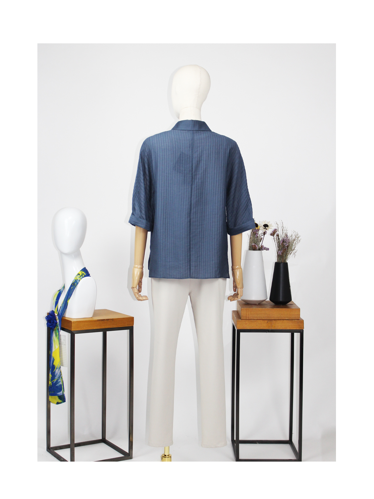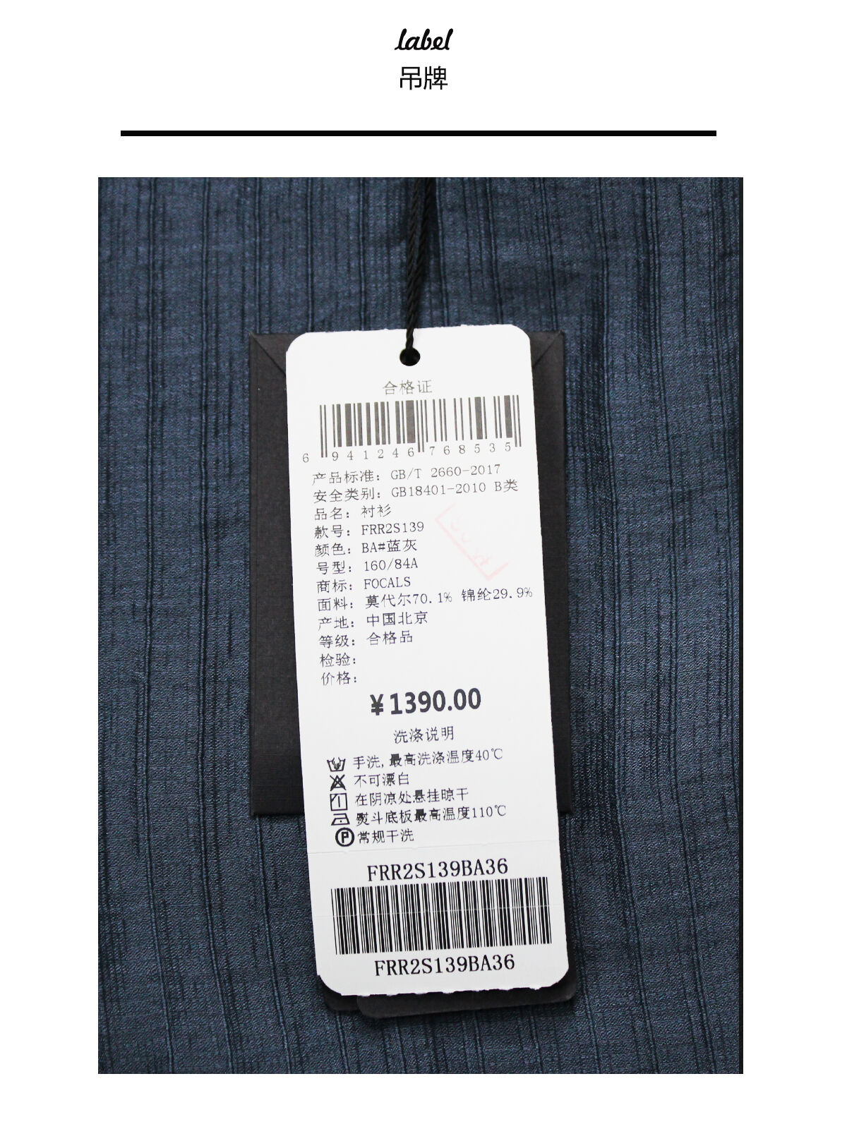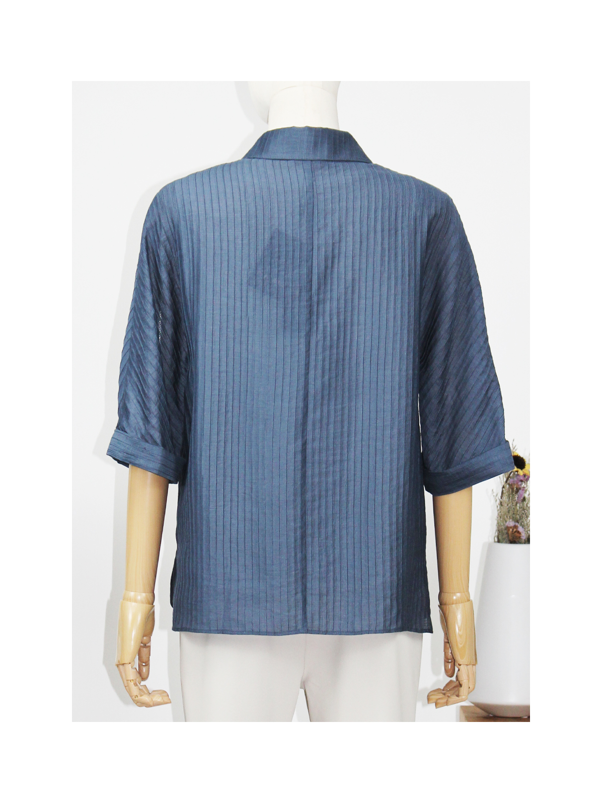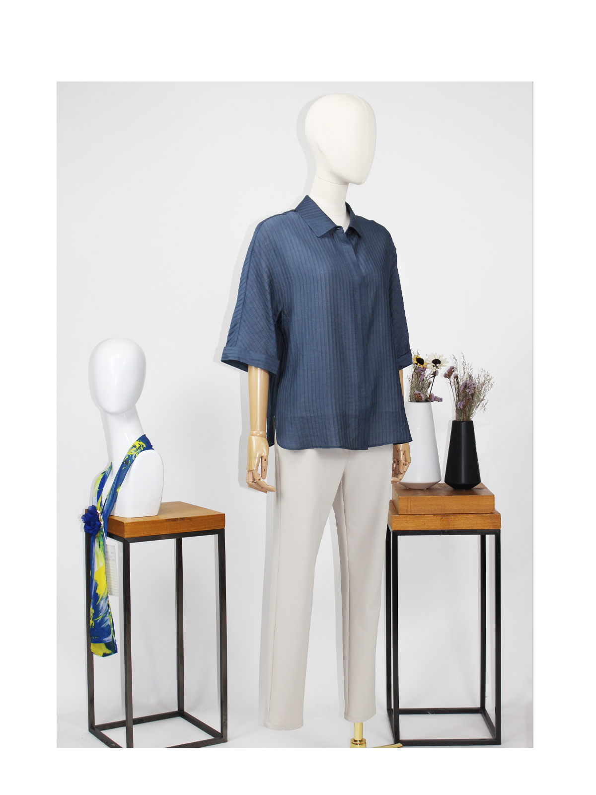 FOCALS福柯斯春夏新款直筒休闲连肩袖五分袖褶皱衬衫FRR2S139BA
