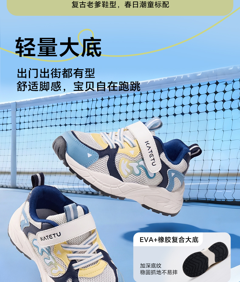 卡特兔童鞋女童鞋子儿童2026年春季新品防滑透气男童老爹运动鞋