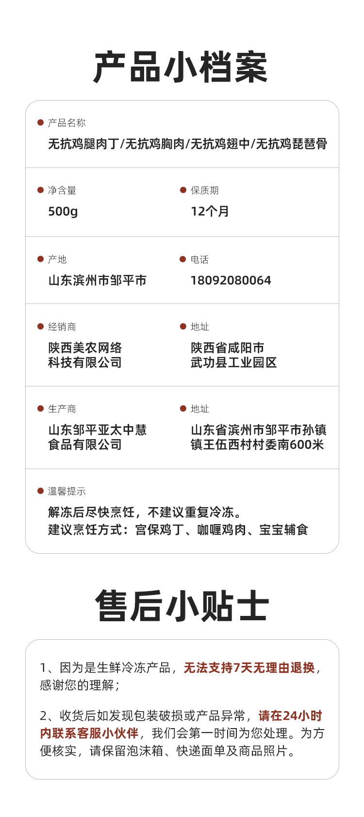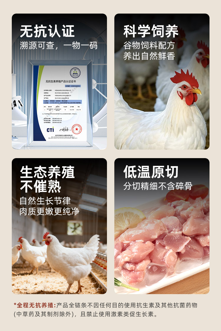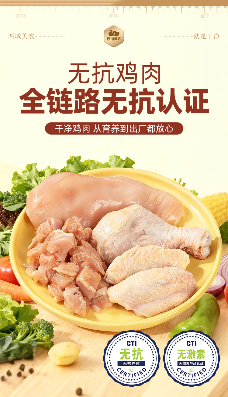 西域美农 无抗鸡肉 无抗鸡胸肉 鸡腿肉丁 琵琶腿 鸡翅中 原始肉香、鲜美不柴 顺丰发货