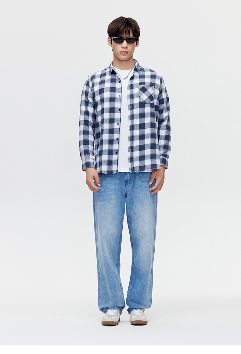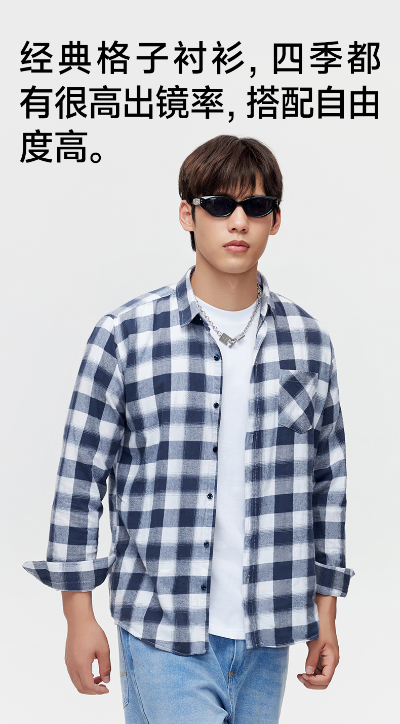 赤兔嗨购纯棉格子衬衫男长袖春秋男生2024新款男装秋装秋季薄男士衬衣