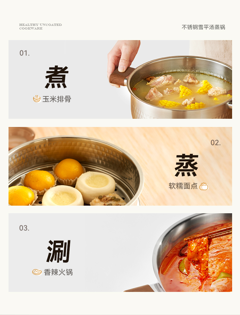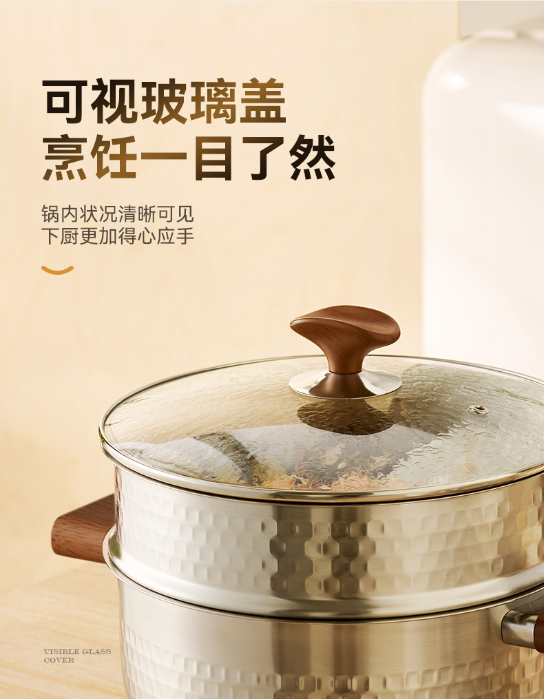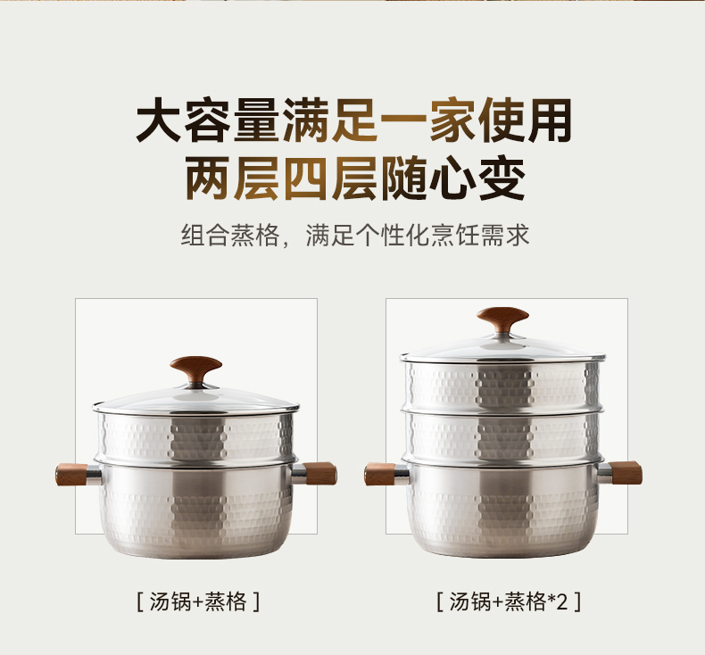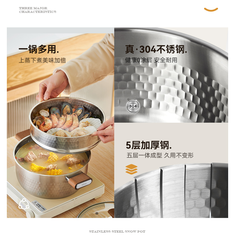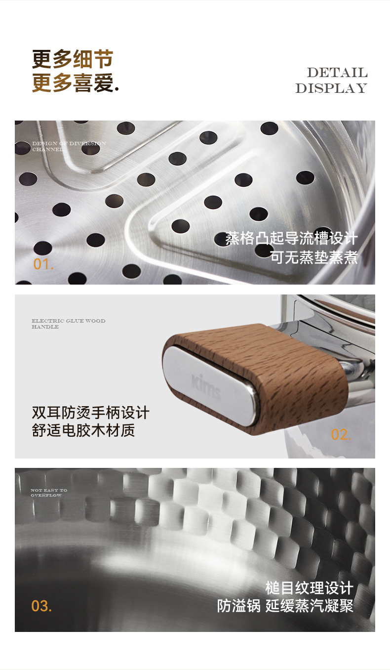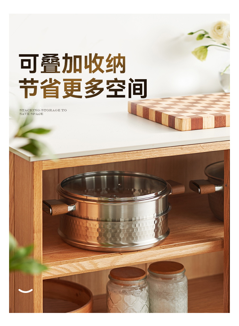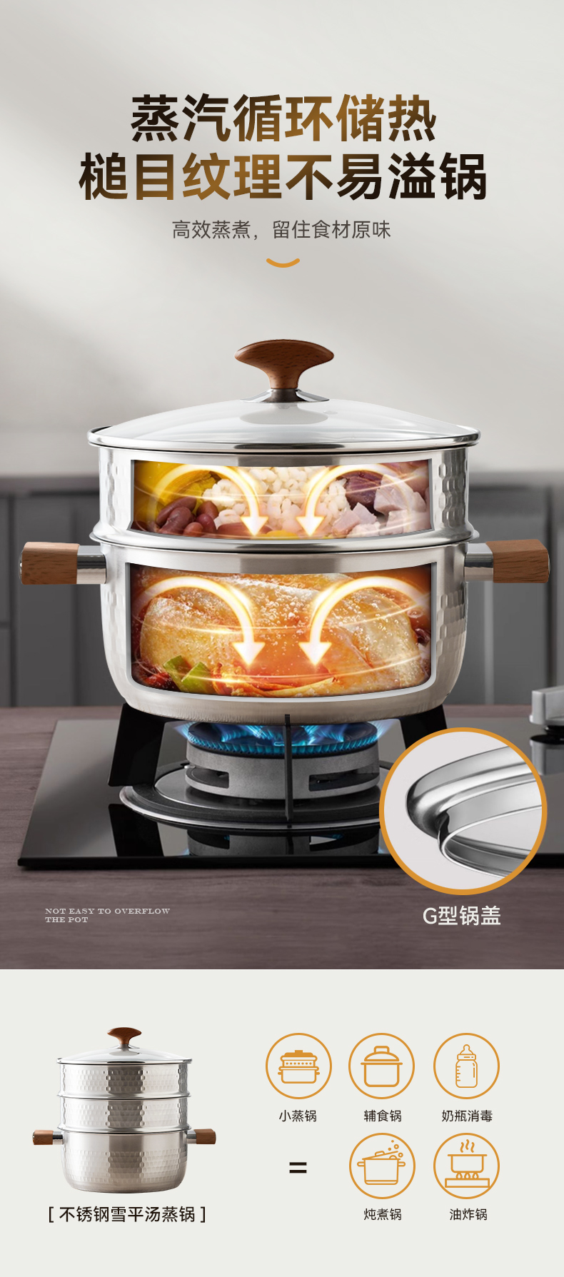 304不锈钢 上蒸下煮 加厚双耳炖锅 燃气电磁炉通用 A-4639 kimscook