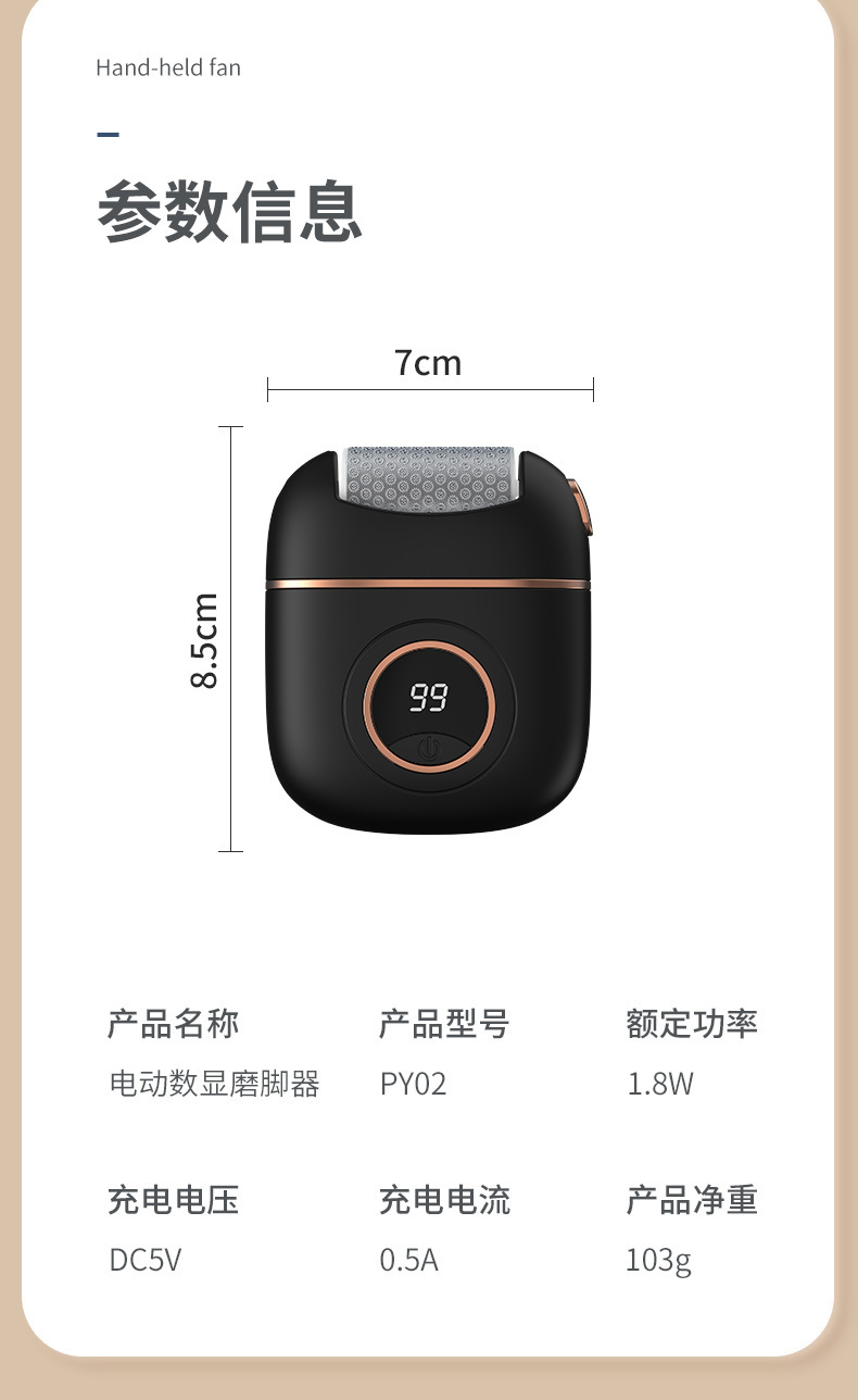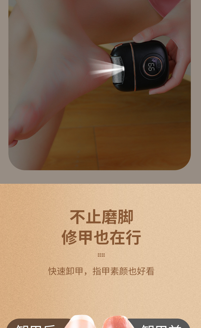 【立享光滑嫩足】数显电动磨脚器 合金磨头 两档调速 便携充电 尽显足部嫩滑