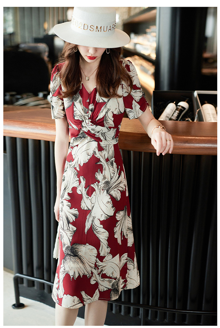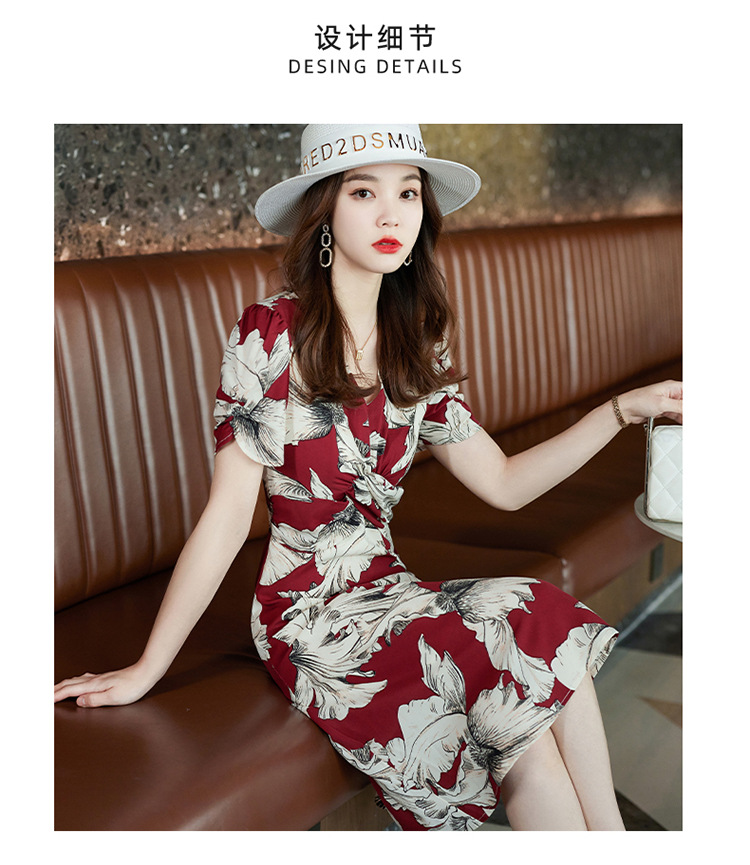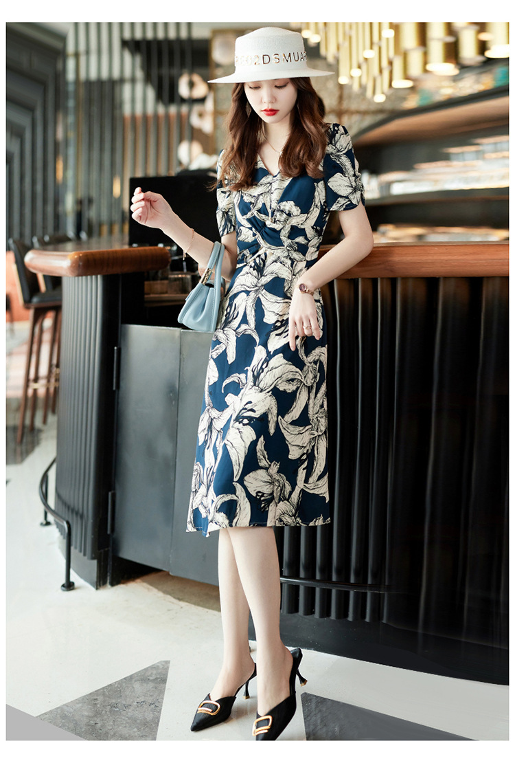 时尚碎花内搭连衣裙女夏季新款女气质显瘦打底雪纺长裙正装 MGG-BGF-1002