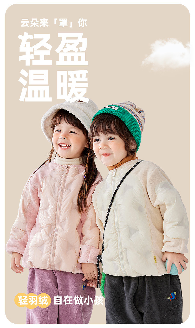 【轻暖系列】嘟嘟家男童羽绒服冬装宝宝奥粒绒拼接外套冬季女童