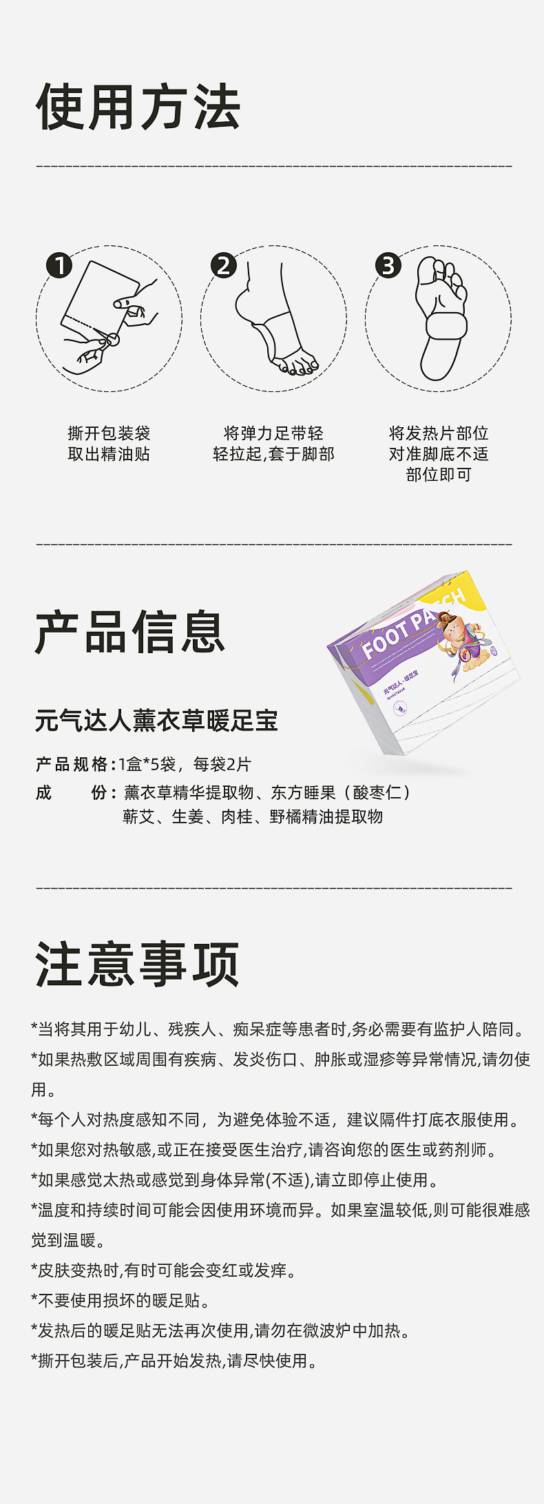 元气达人蒸汽薰衣草精油暖足贴脚底暖宝宝持久热敷