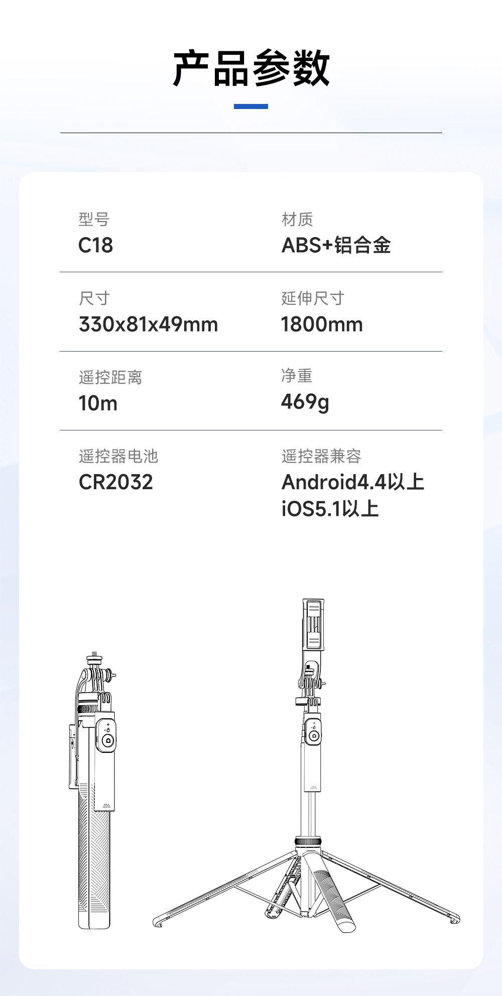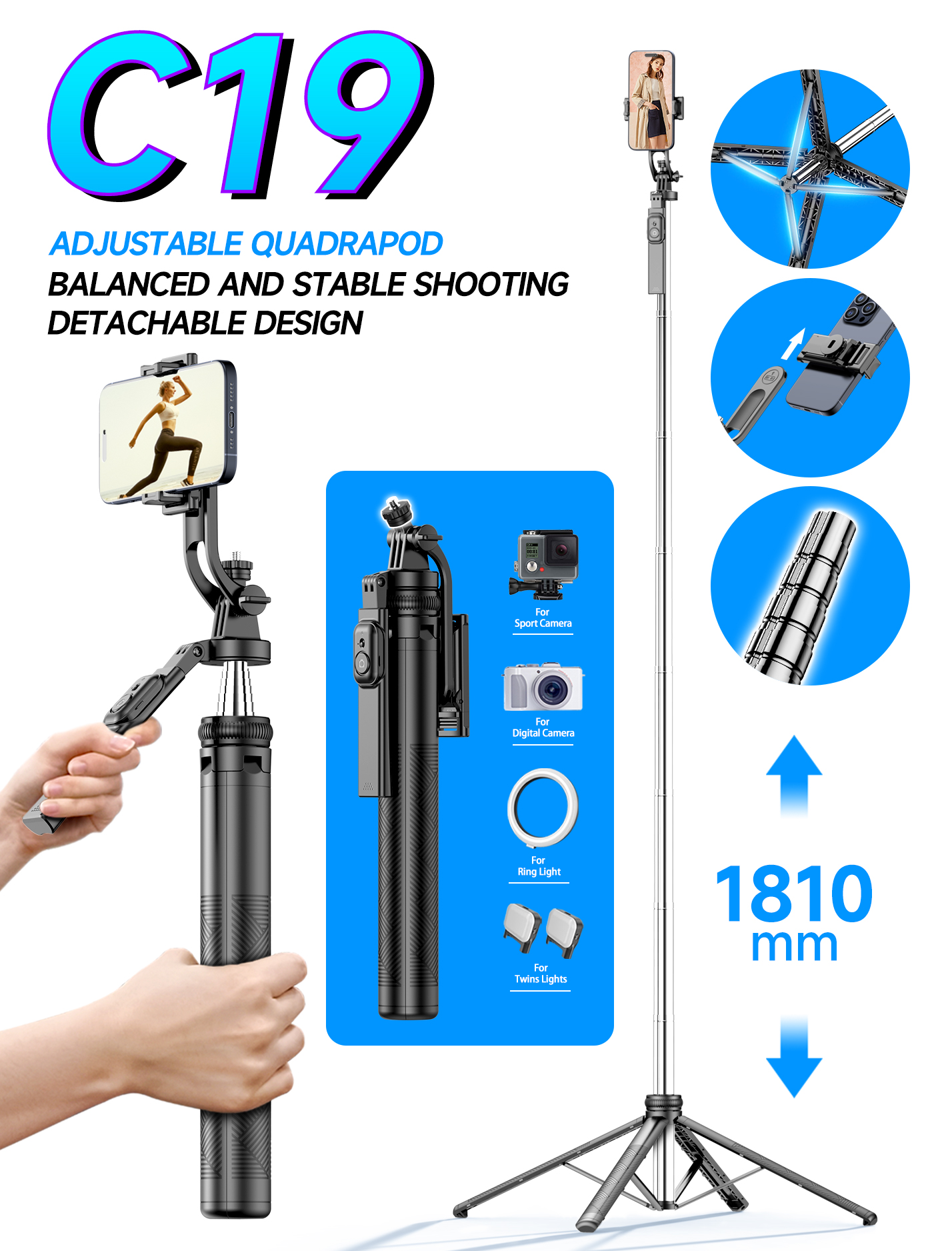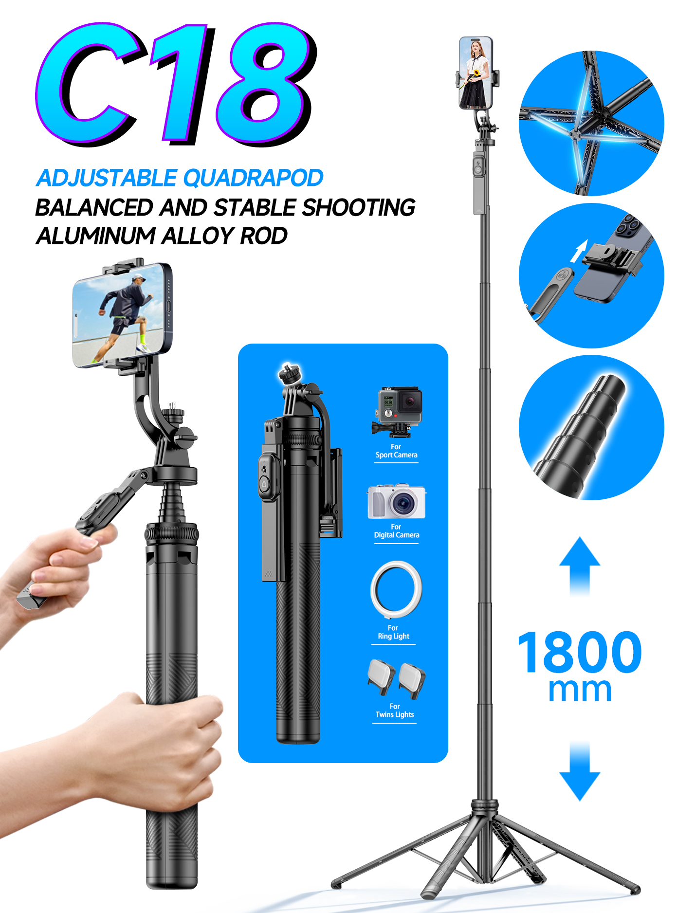 C18/C19/TTO1跳跳杆稳拍器云台自拍杆手机支架落地三脚架 手机通用360度自拍照神器360度旋转多功能手持防抖旅游便携直播演唱会拍摄专用稳定器四脚