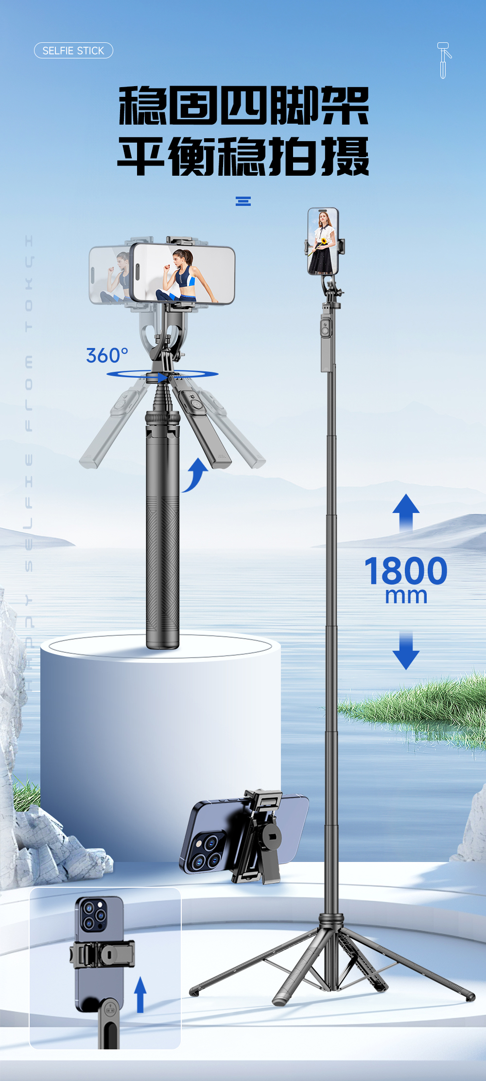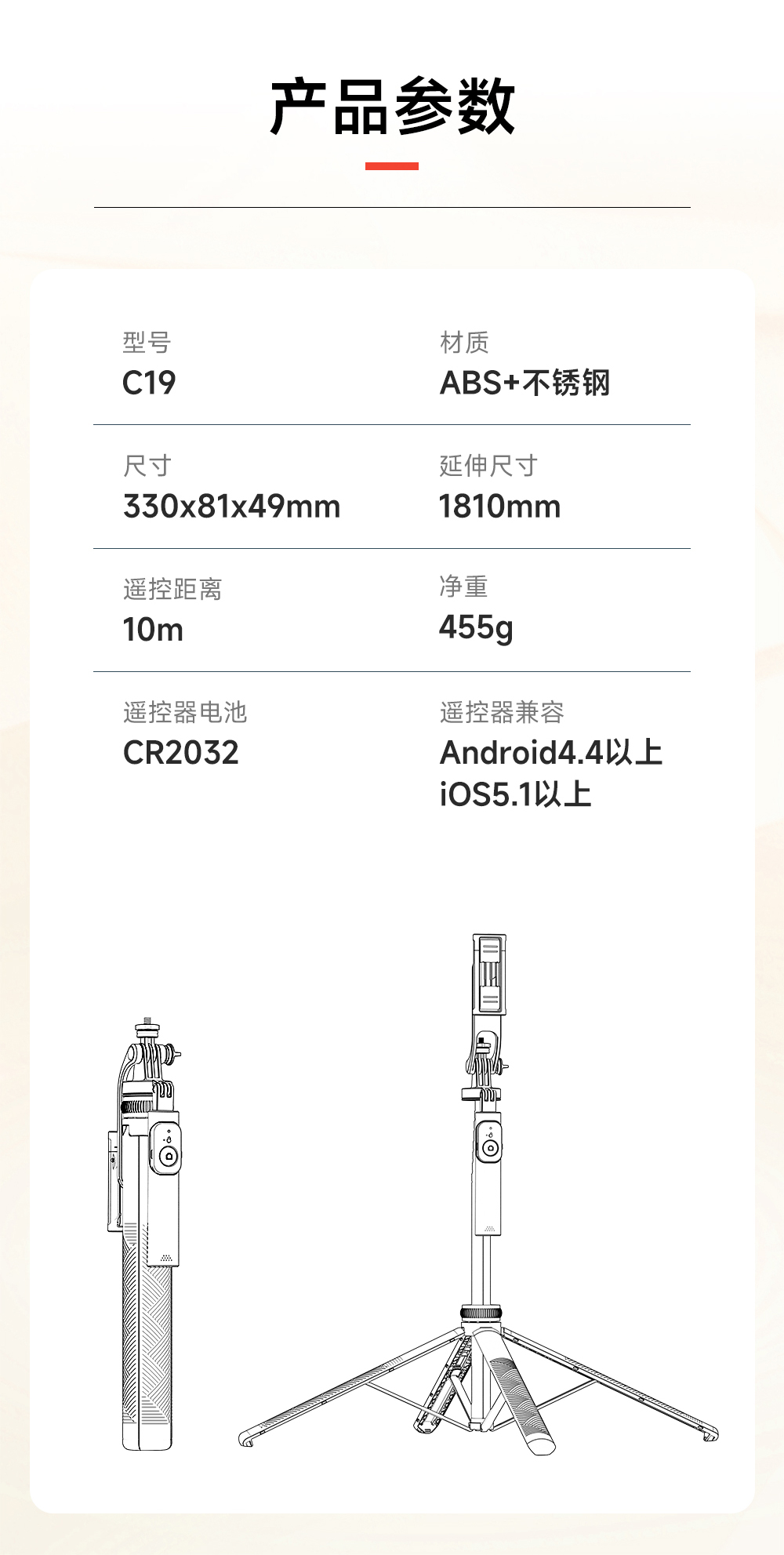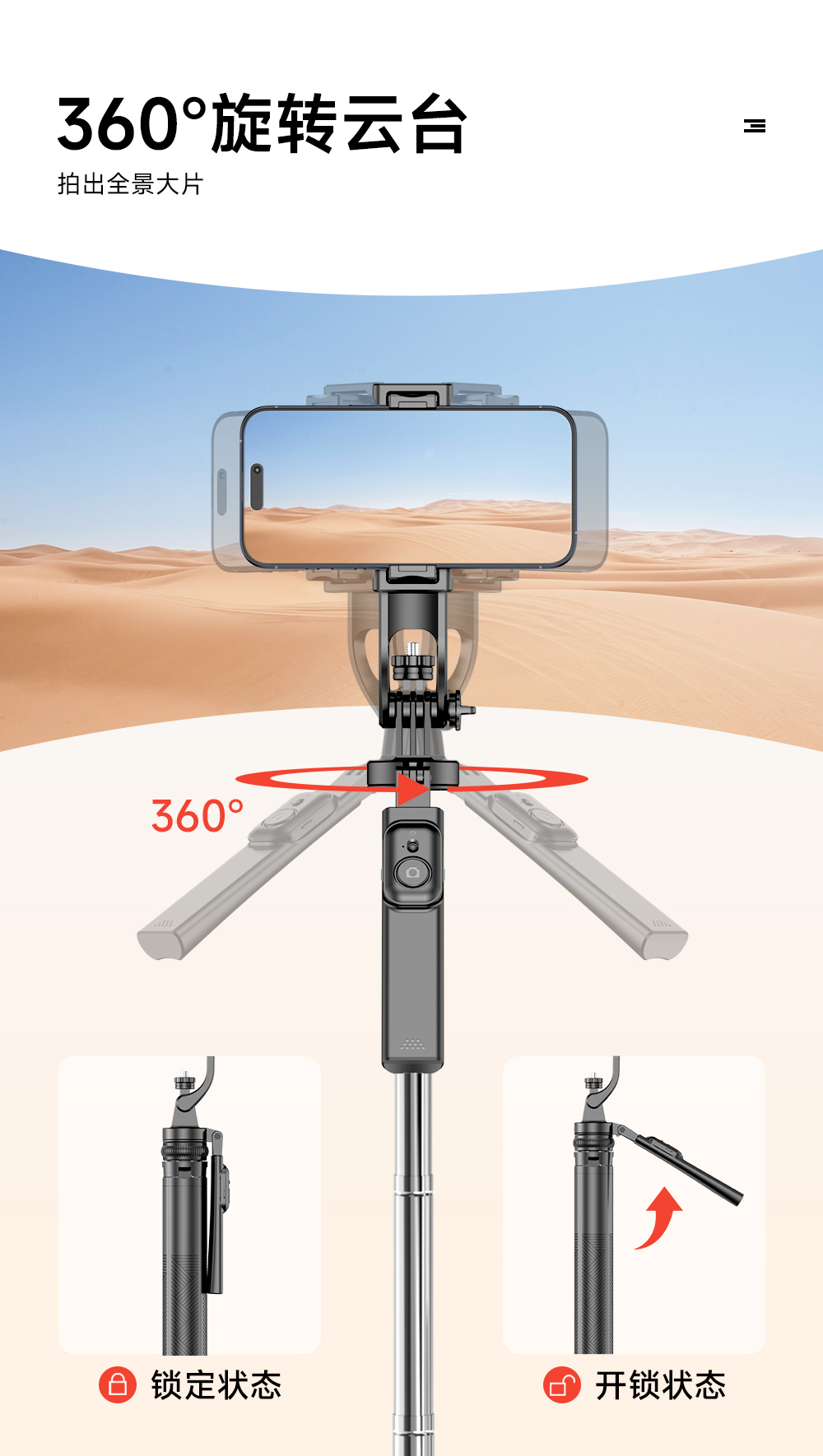 C18/C19/TTO1跳跳杆稳拍器云台自拍杆手机支架落地三脚架 手机通用360度自拍照神器360度旋转多功能手持防抖旅游便携直播演唱会拍摄专用稳定器四脚