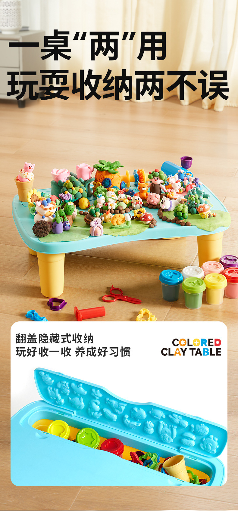 【超轻不粘手的多功能彩泥桌】ONSHINE童年无限幼儿园 DIY彩泥桌 橡皮泥 带印章数字 儿童益智玩具