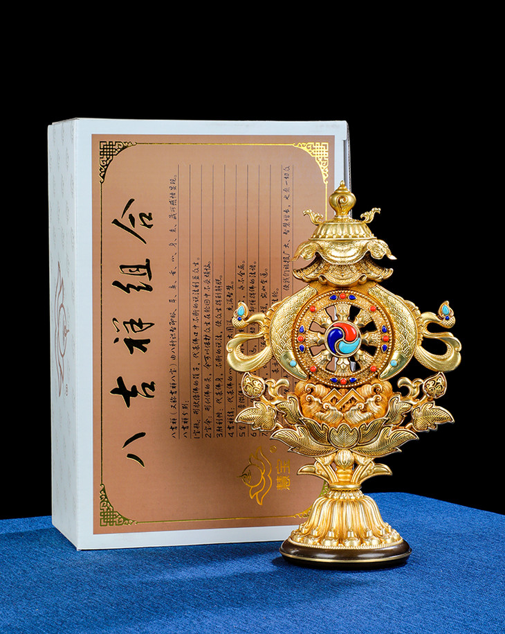 组合八吉祥摆件密宗纯铜慧宝组合吉祥八宝藏传金轮法轮佛前供奉台摆件