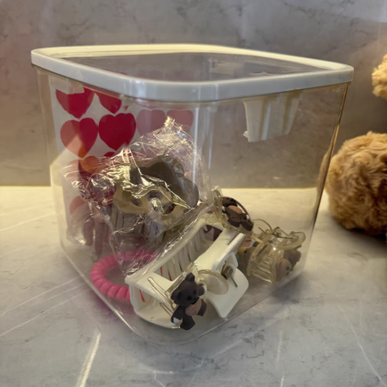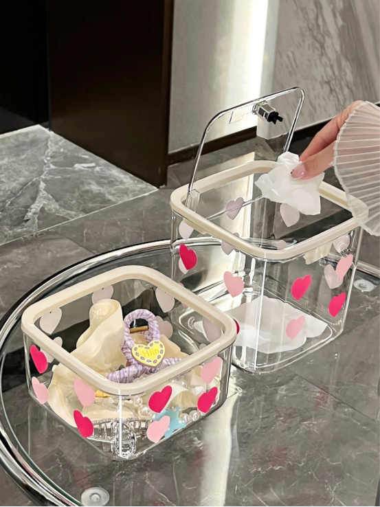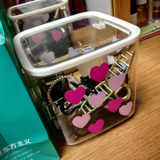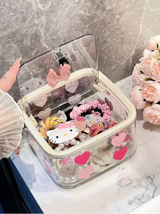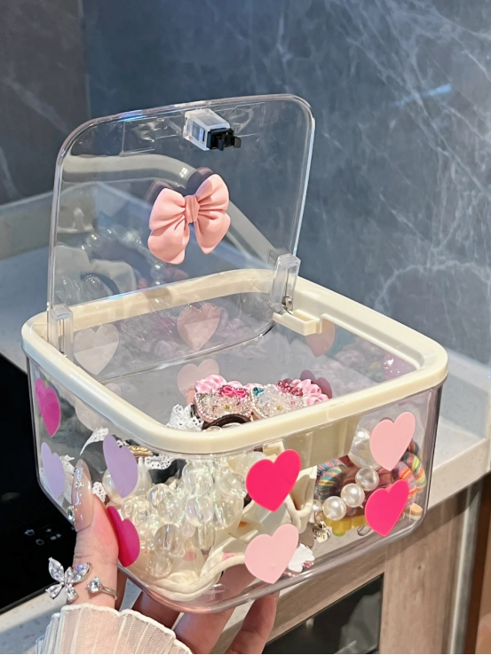 小公主的桌面收纳盒! 透明设计一眼就能看到里面的发绳、发夹 再也不用翻箱倒柜找配饰啦~ 带盖设计防尘又整洁 按压开合超方便 小朋友也能轻松操作 大容量能装下超多发饰 皮筋、贴纸、小夹子都能分类放好 桌面瞬间变整齐! 而且颜值在线,粉粉嫩嫩超可爱 家里有女宝的宝妈们快冲 告别杂乱无章的梳妆台!