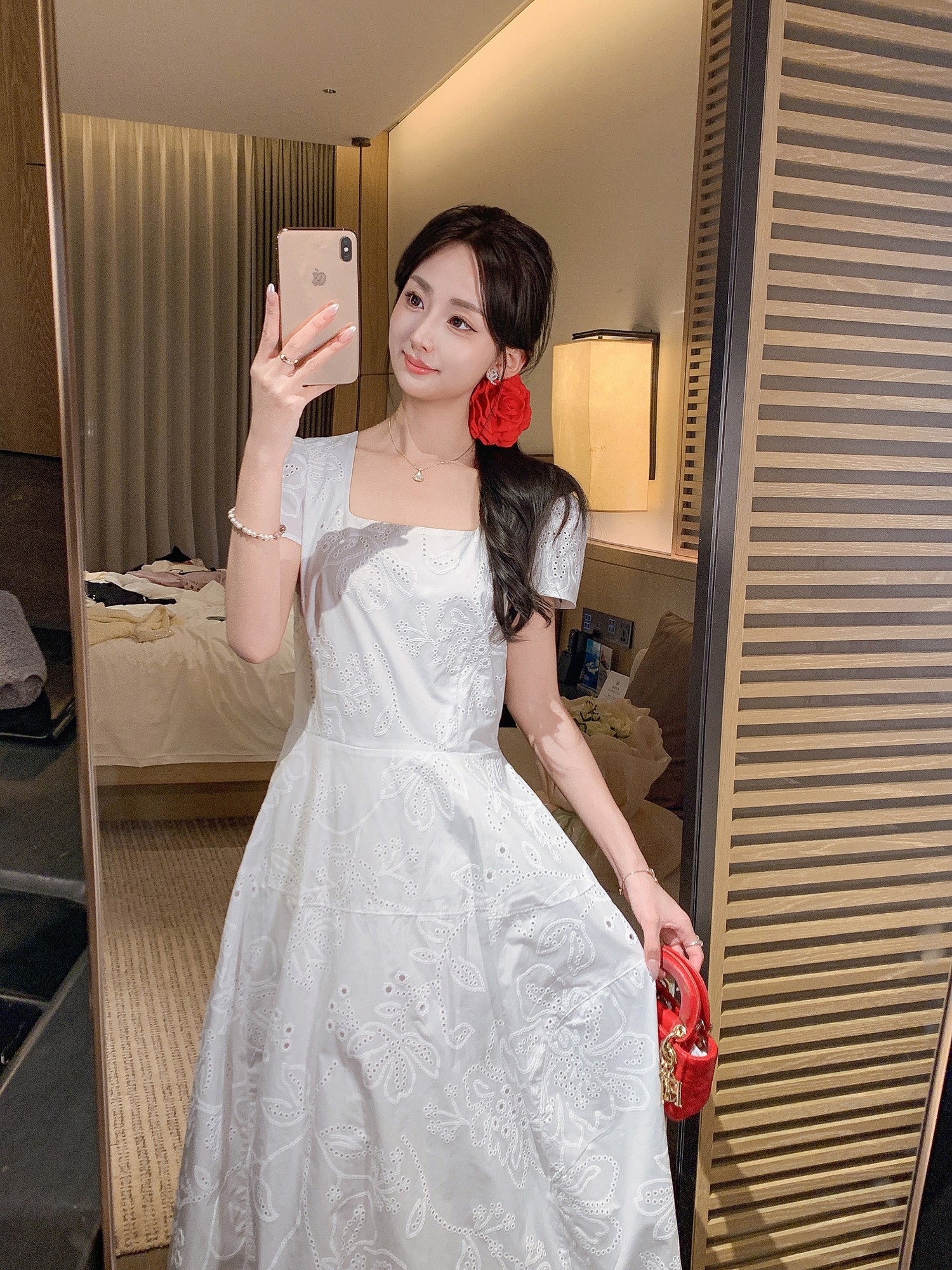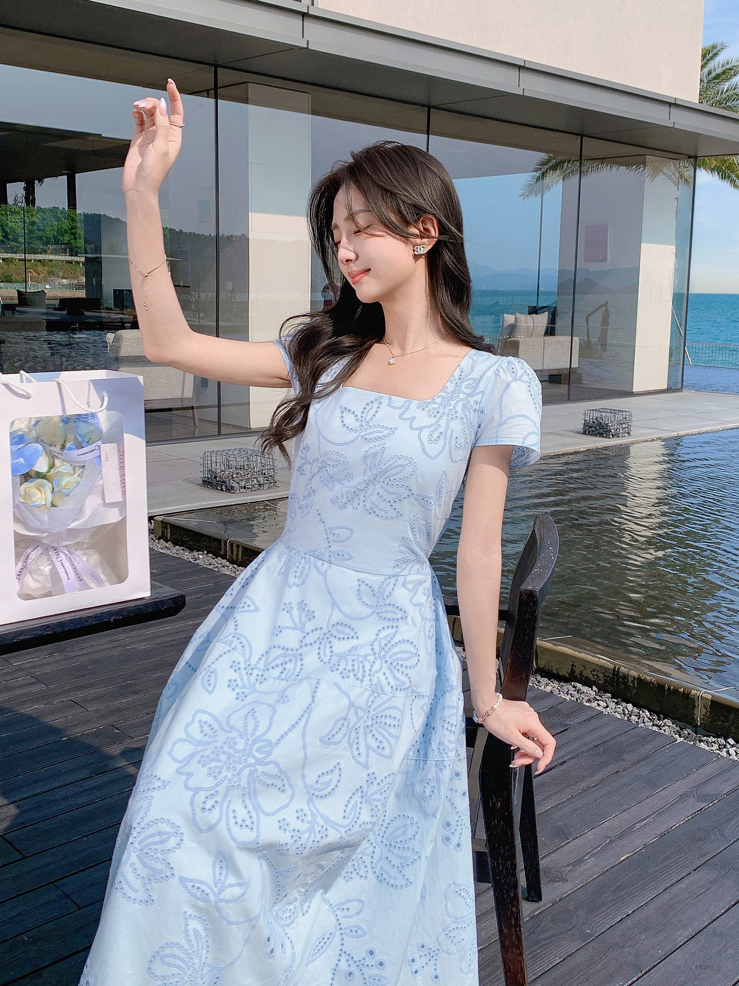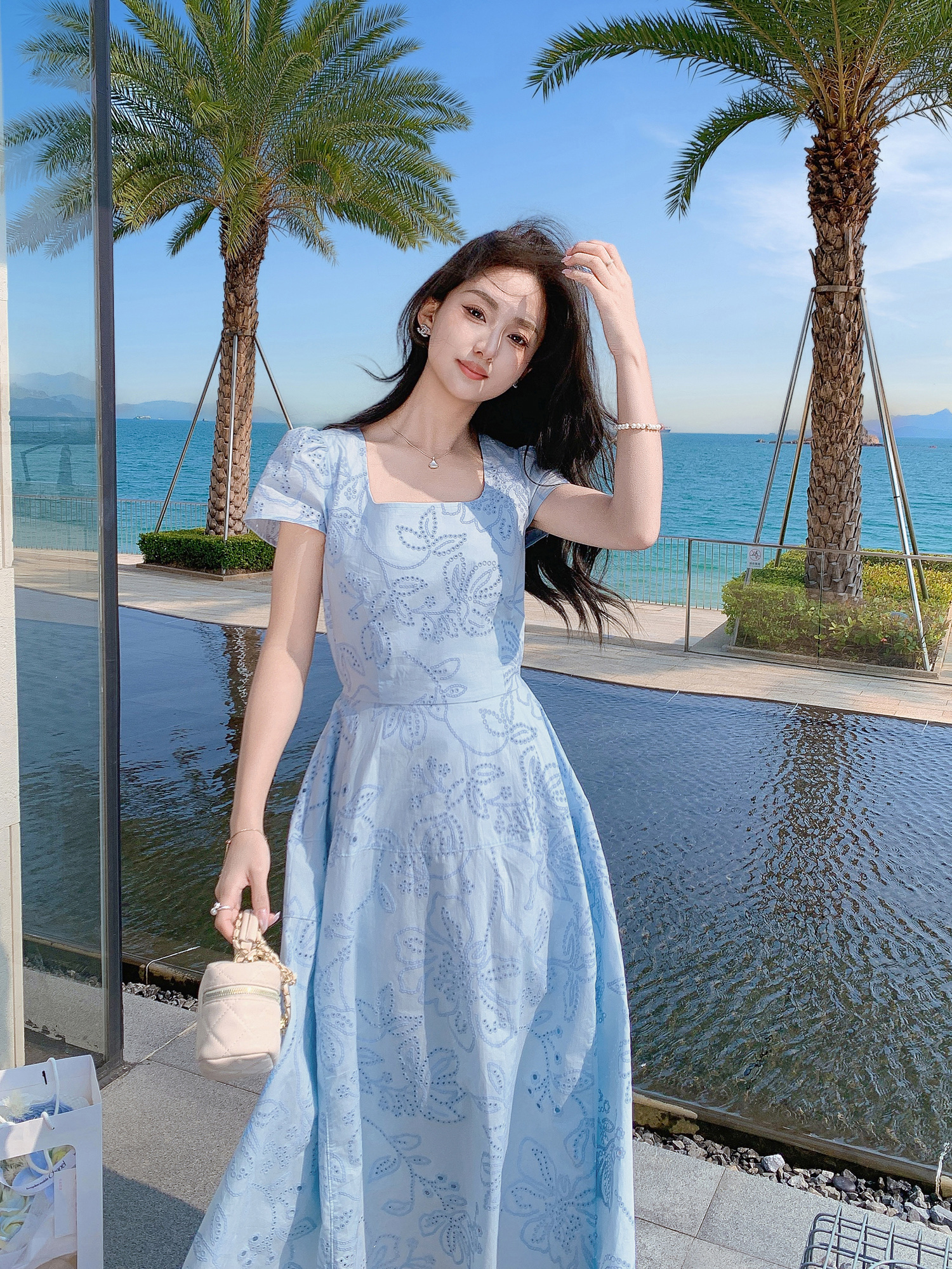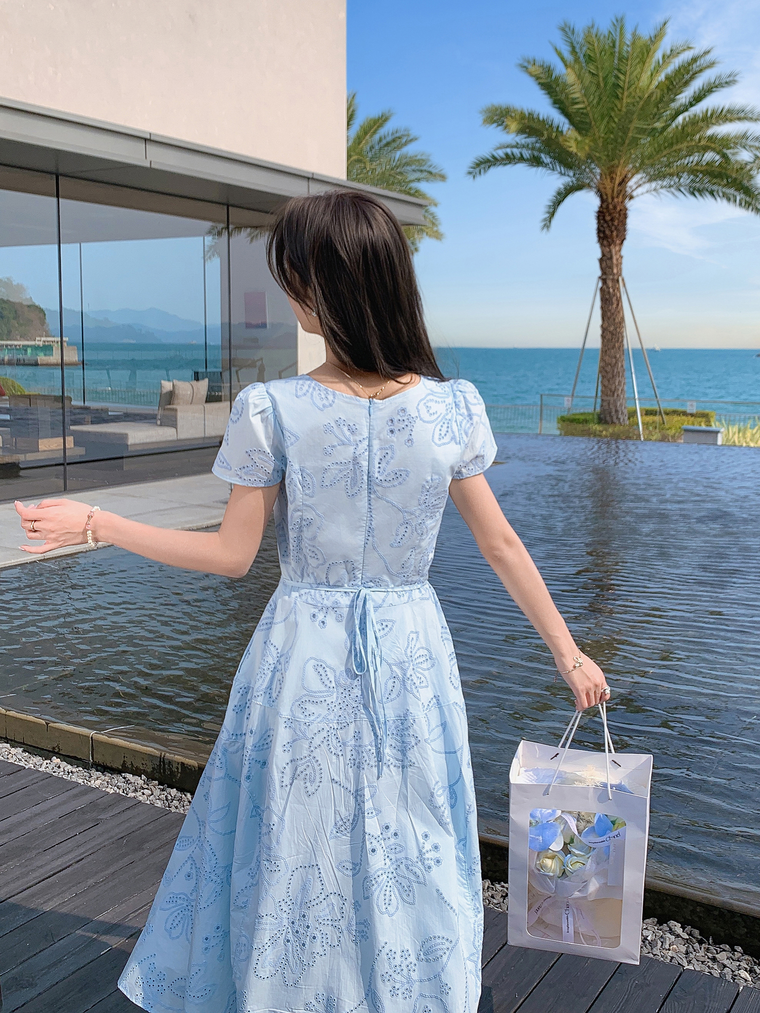 张心子【Spring度假日】夏款度假风镂空刺绣气质显瘦连衣裙 U2504019