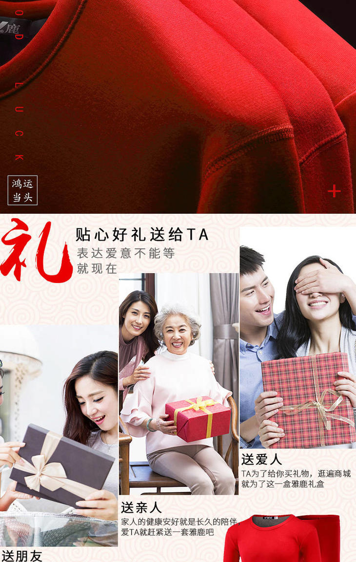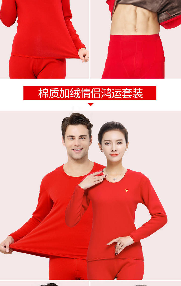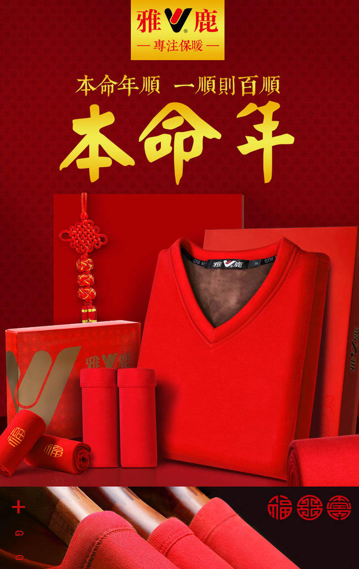 鸿运福至【本命年套装】雅鹿保暖内衣男大红色本命年内衣套装