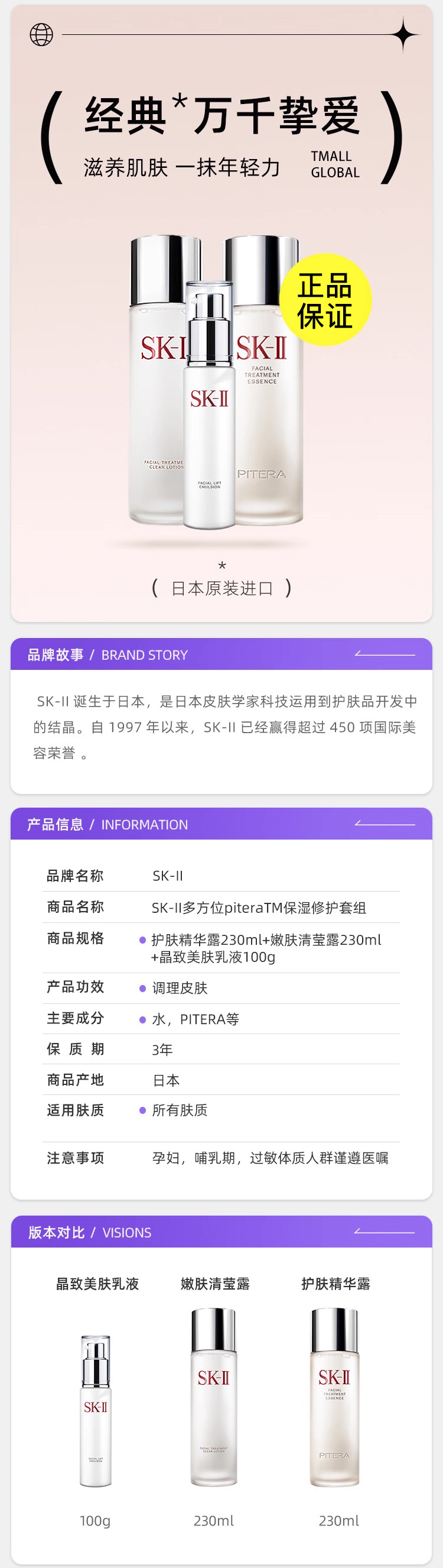 SK-II 多方位护肤三件套(神仙水230ml+清莹露230ml+骨胶原乳液100g)
