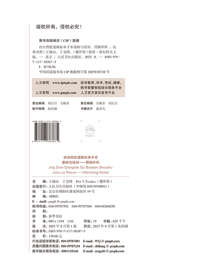 经自然腔道取标本手术基础与培训 胃肠外科 王锡山 丁克峰 内容包括总论术前准备腹腔镜结直肠NOSES腹腔镜胃NOSES等人民卫生出版社