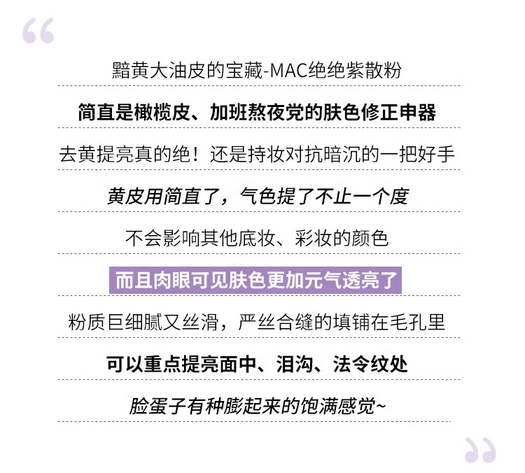 MAC/魅可绝绝紫散粉无瑕定妆持久控油提亮轻盈