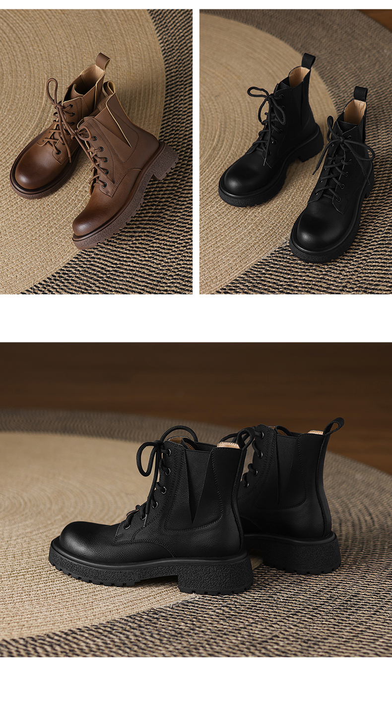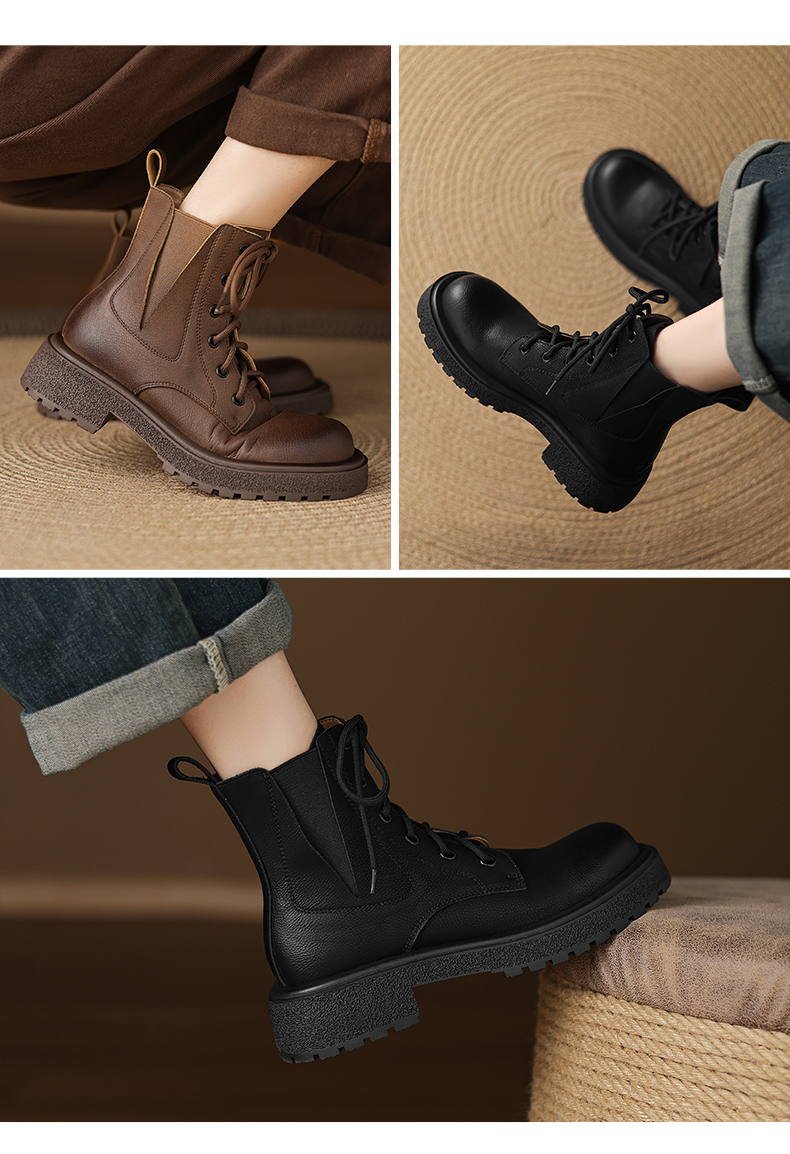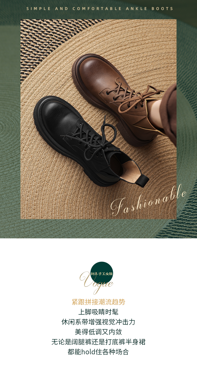 阿么手工女鞋2025新款复古风绑带马丁靴英伦女秋冬百搭短靴4.5CM