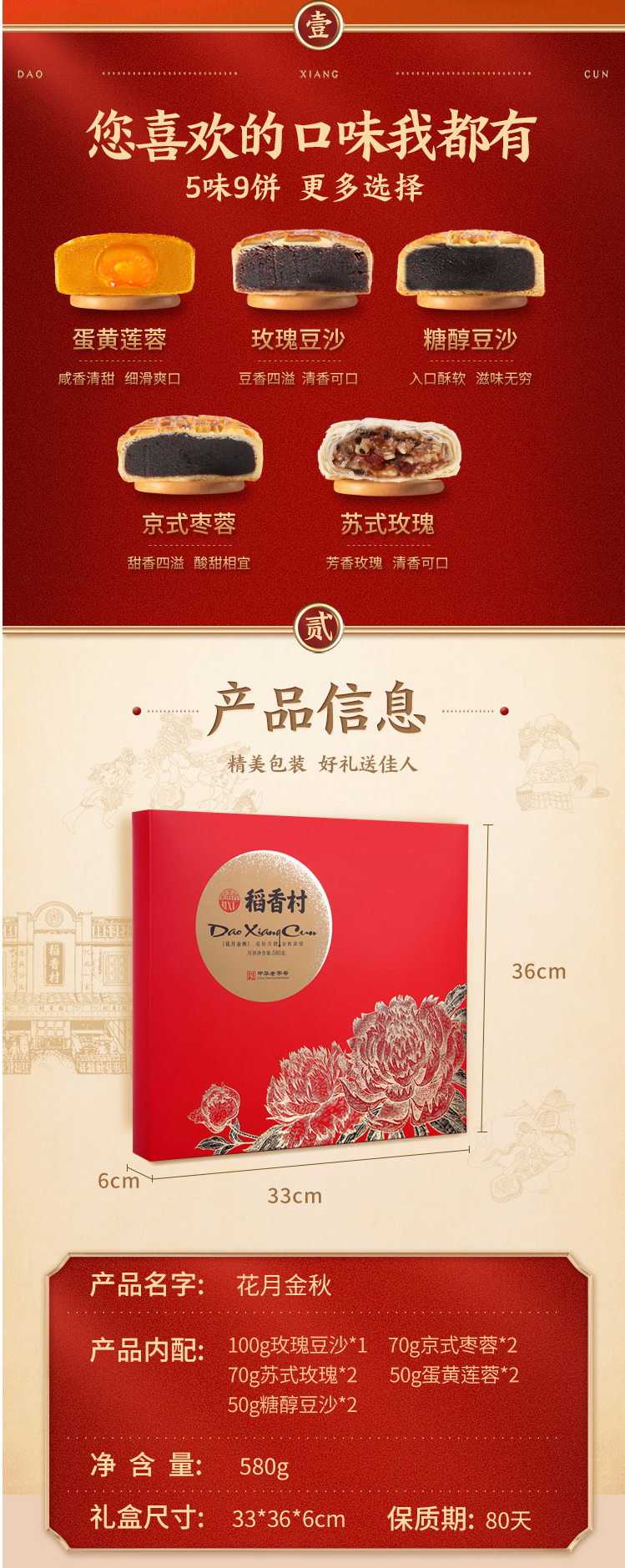 【和美共团圆】稻香村花月金秋月饼礼盒580g