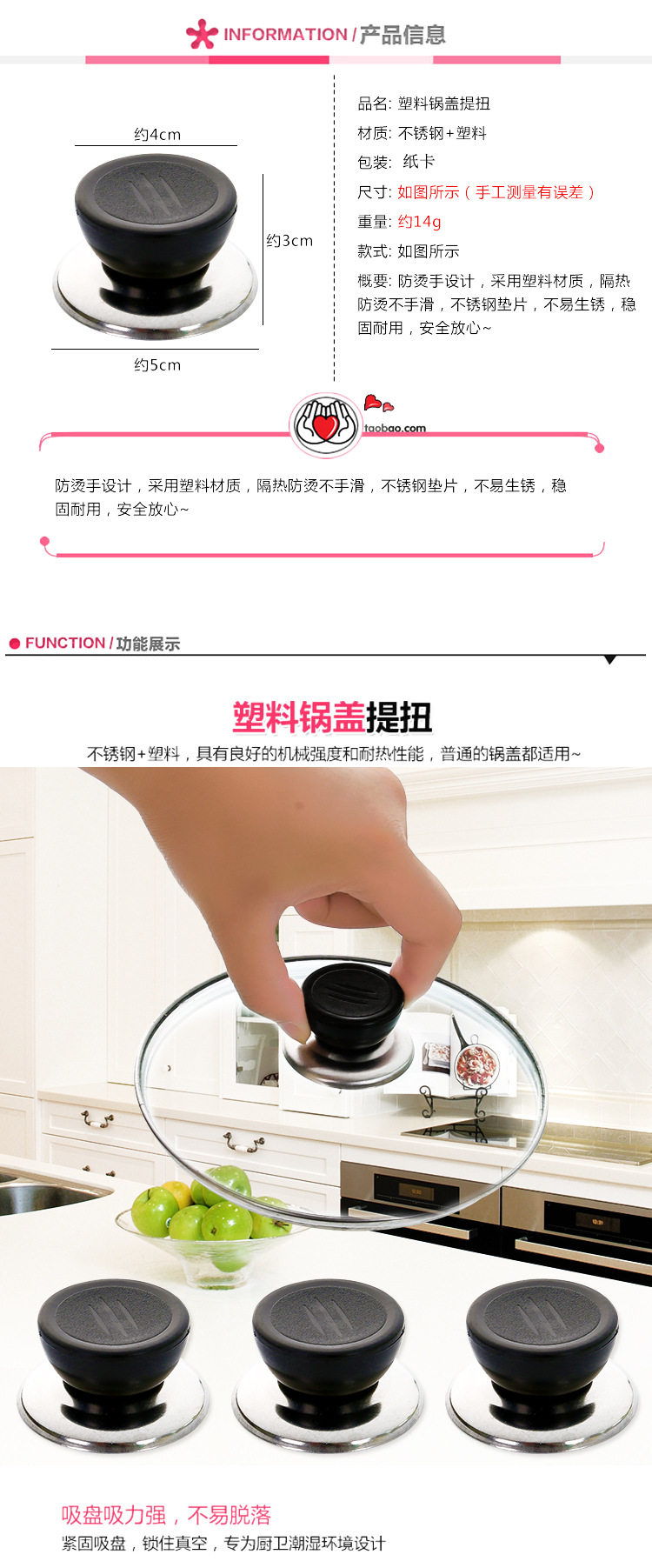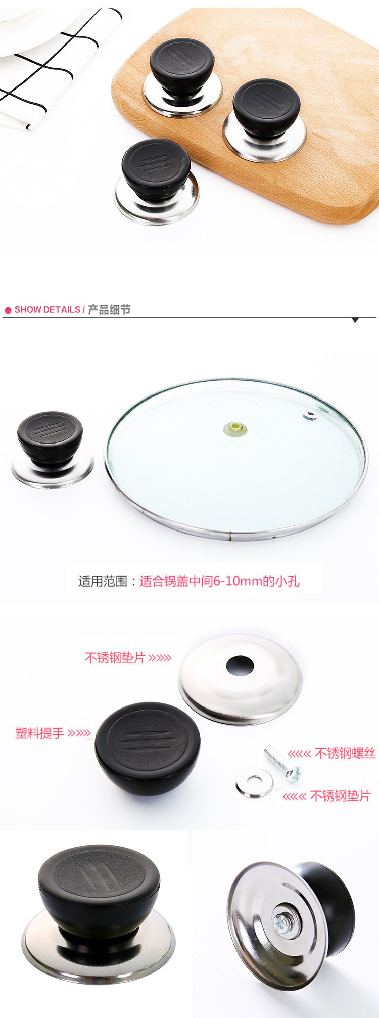 防烫锅盖盖配件提手盖帽纽手柄配套把手塑料通用锅锅盖头玻璃锅盖