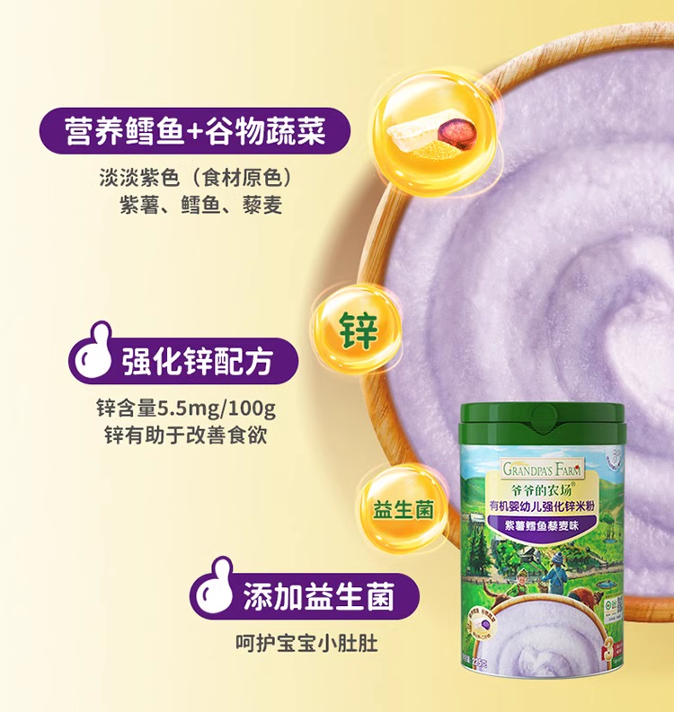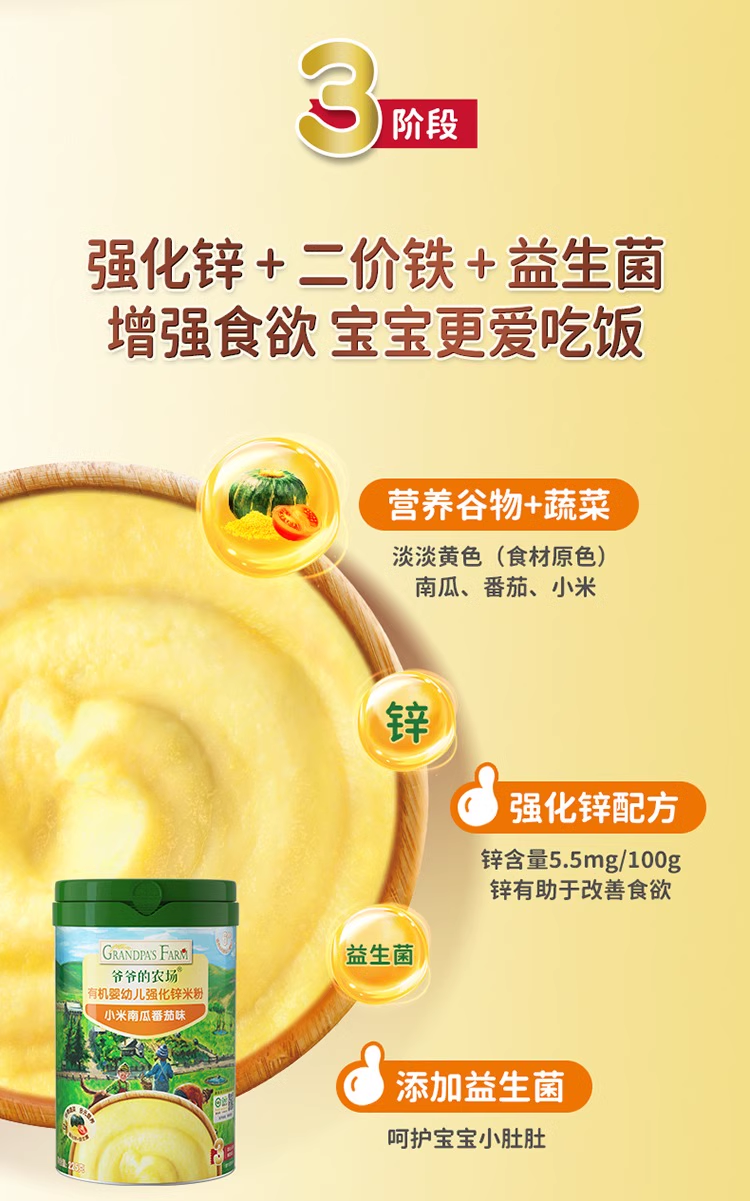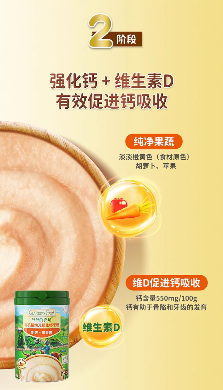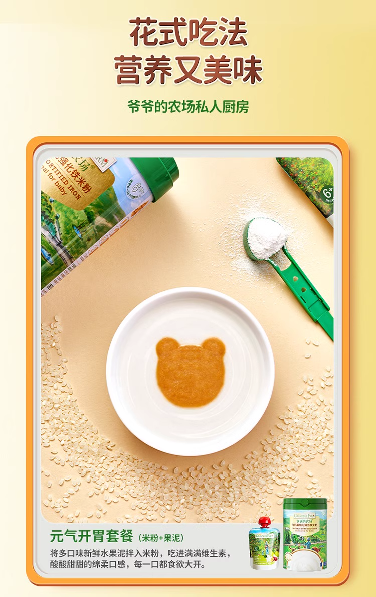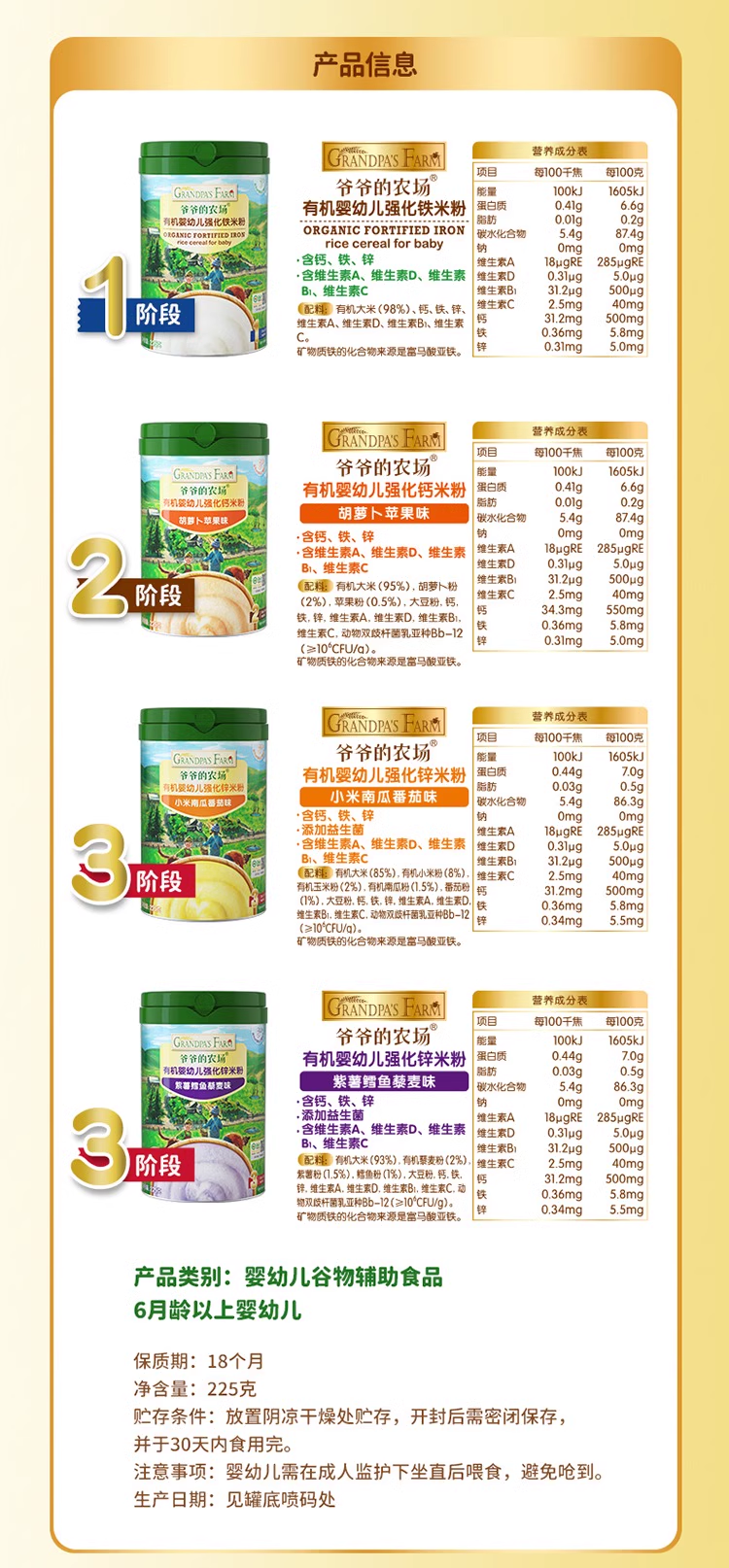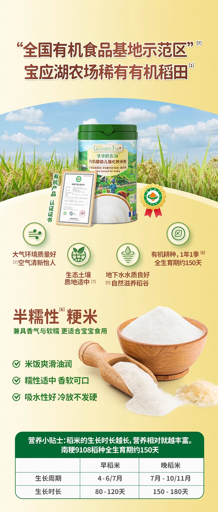 爷爷的农场婴幼儿高铁米粉225g强化铁米粉宝宝辅食米糊有机大米粉