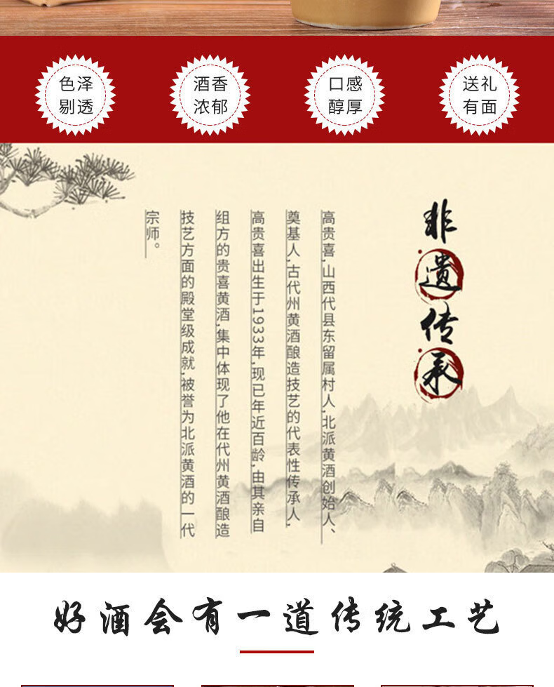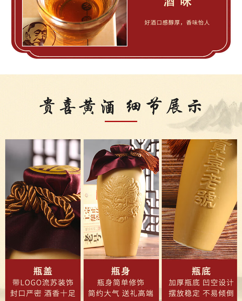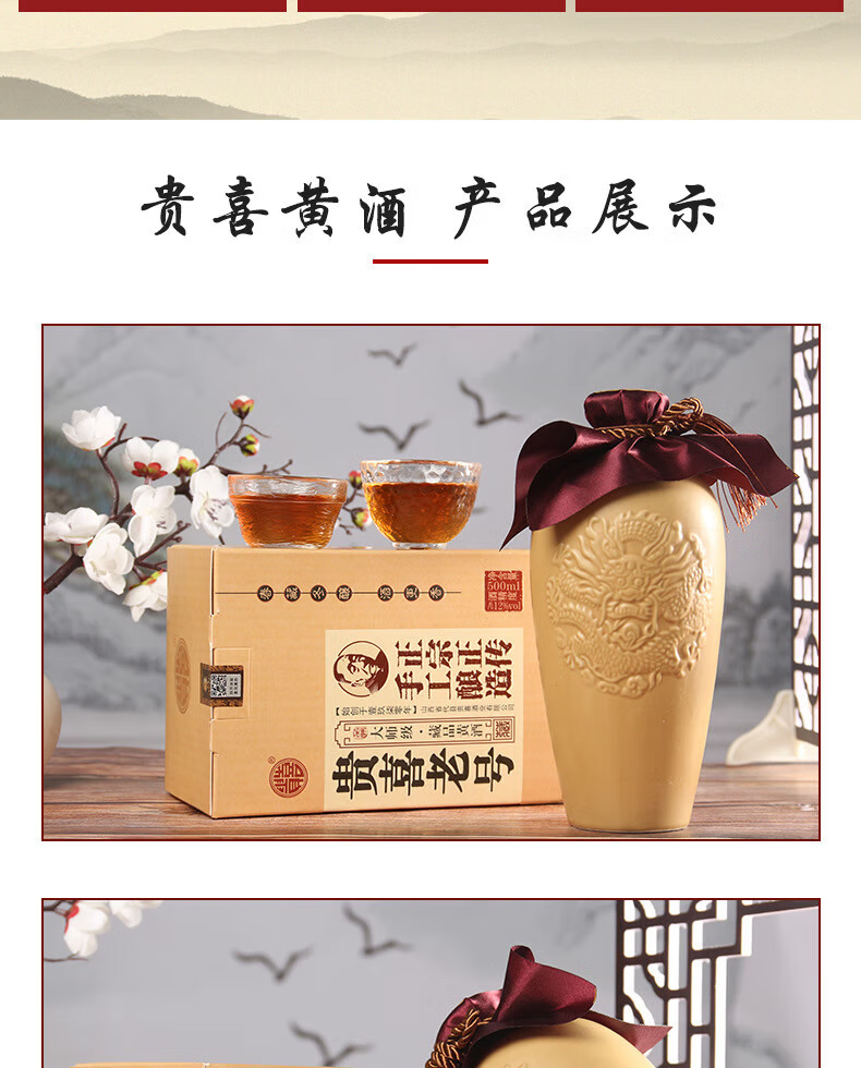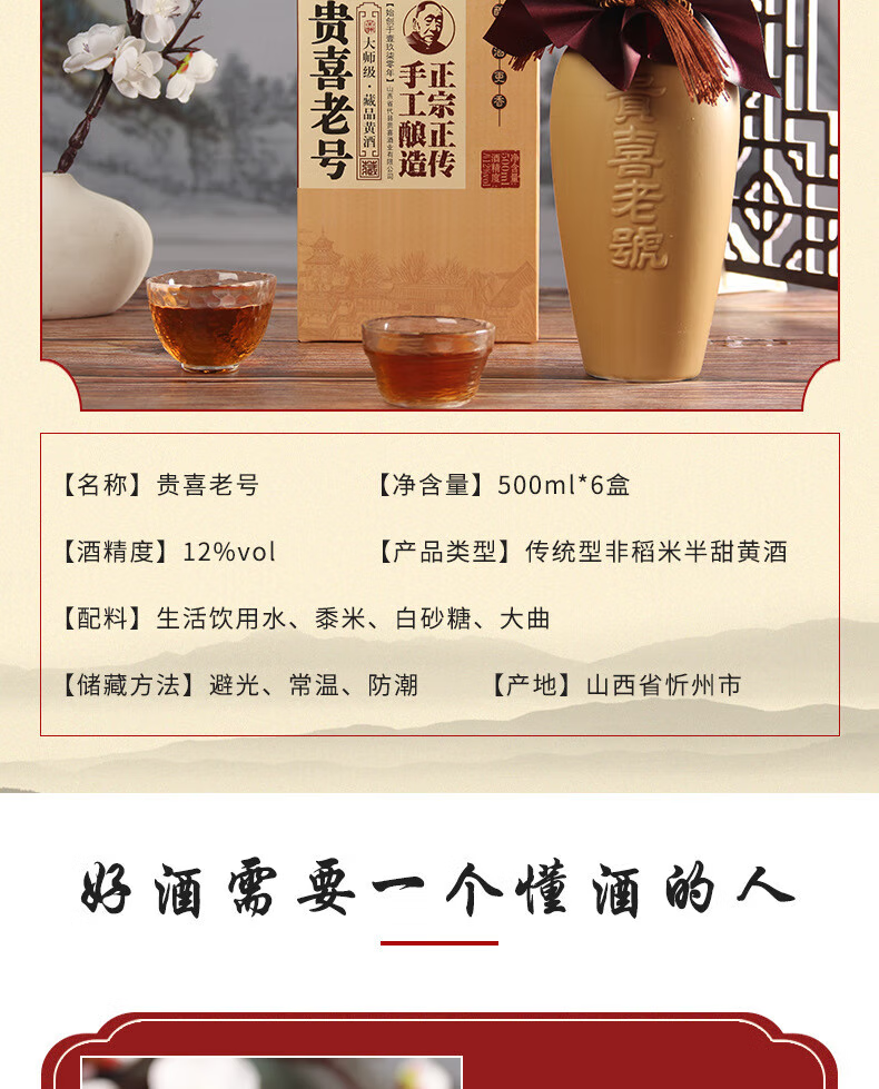 贵喜山西忻州代县特产 贵喜黄酒礼盒装贵喜老号纯粮手工酿造500ml*6瓶/箱