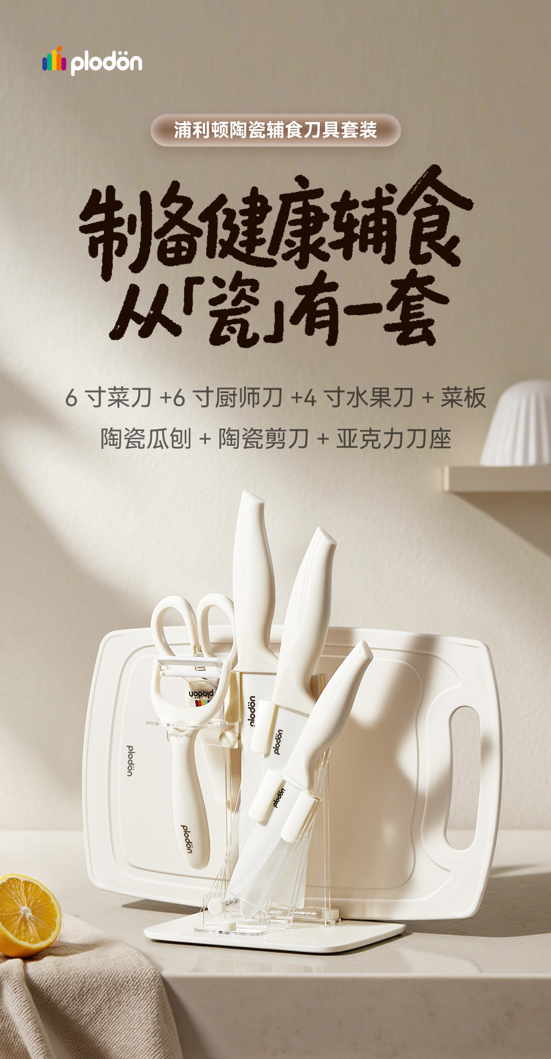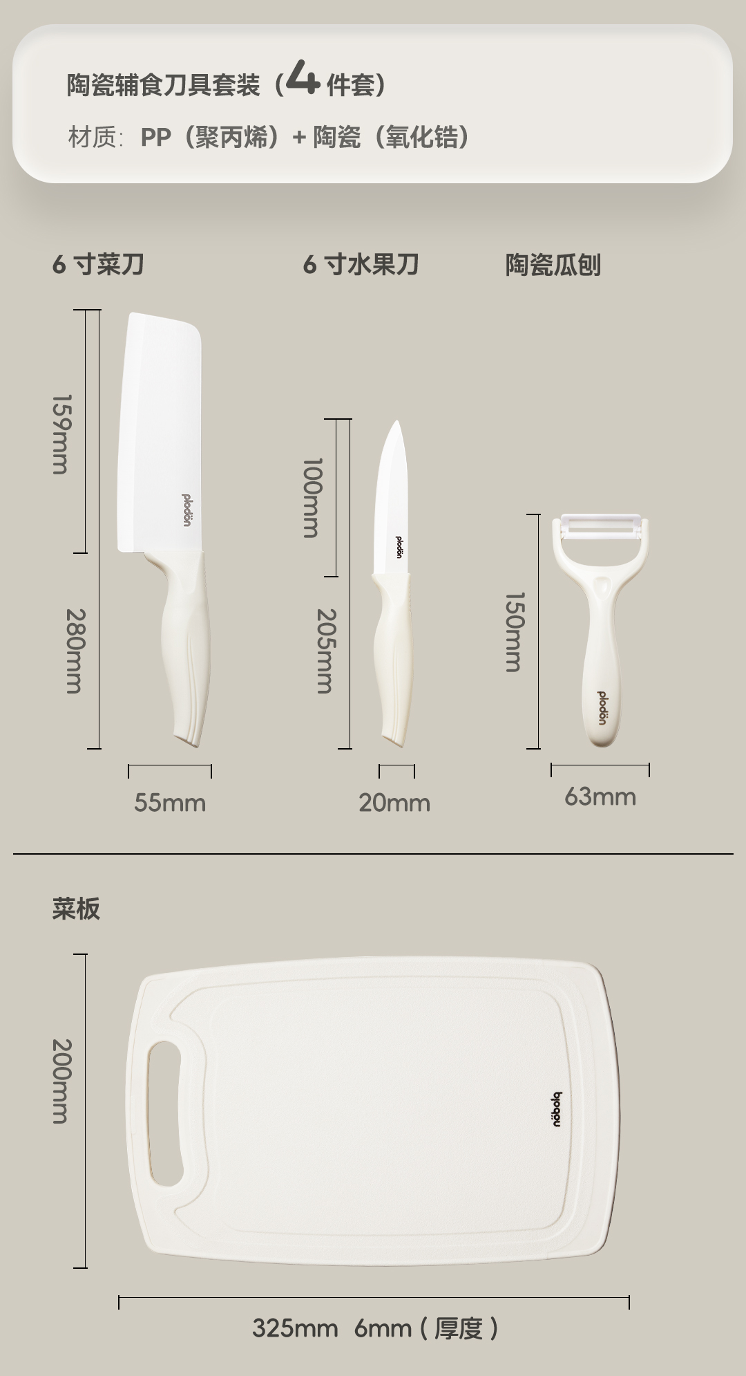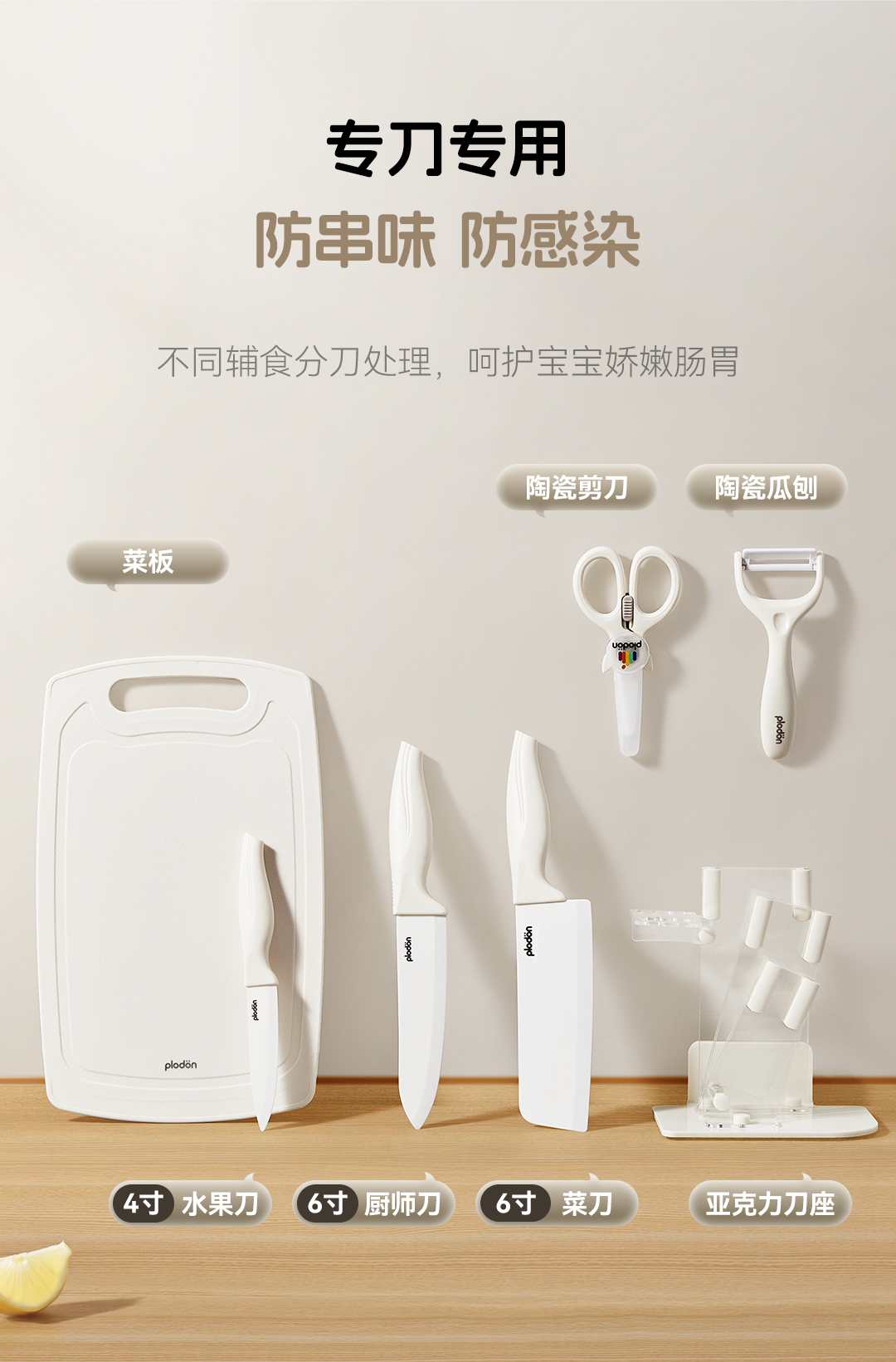 浦利顿婴儿辅食刀具套装宝宝专用陶瓷厨具全套组合菜刀菜板二合一