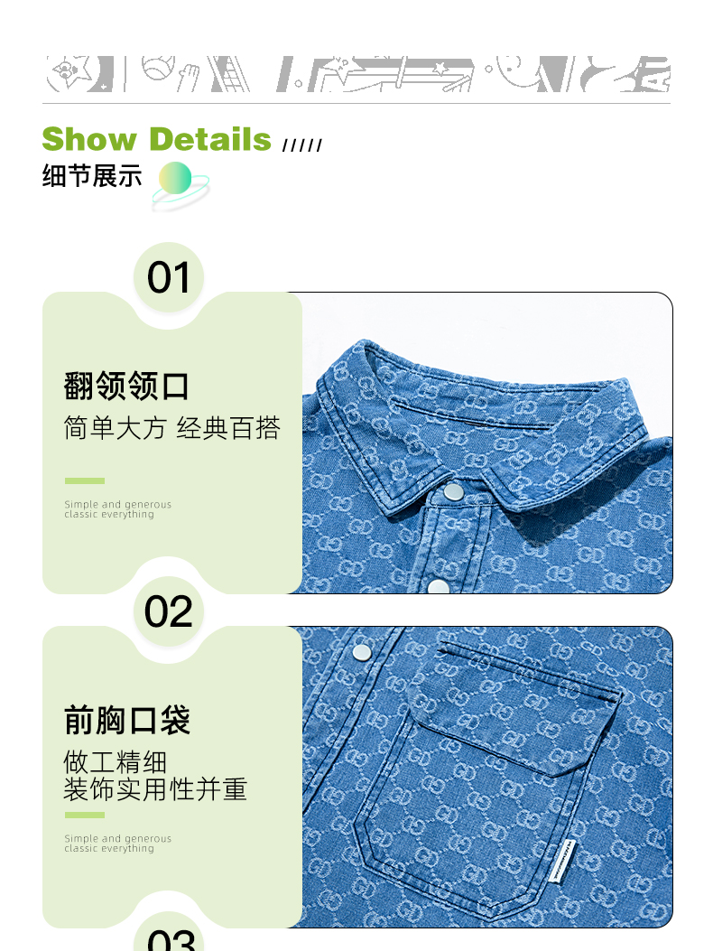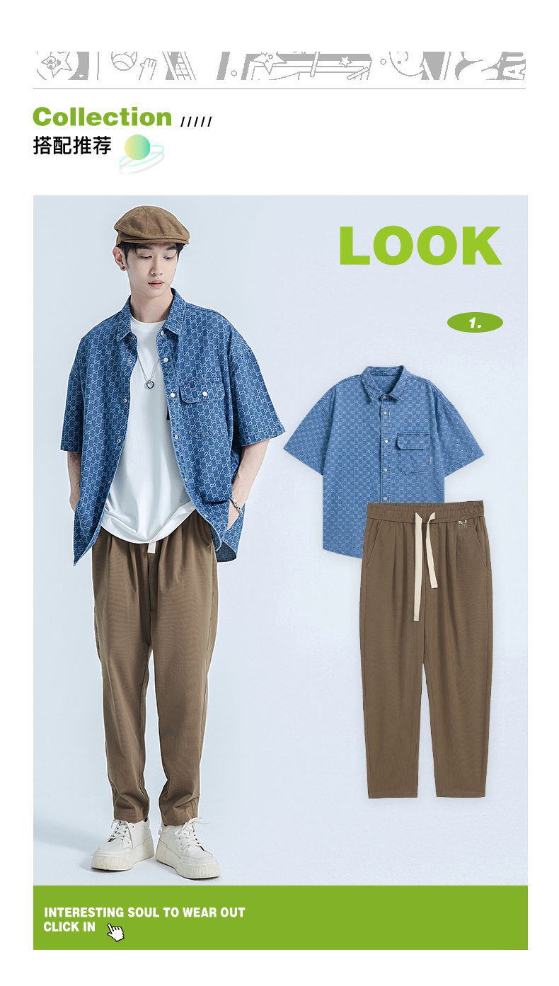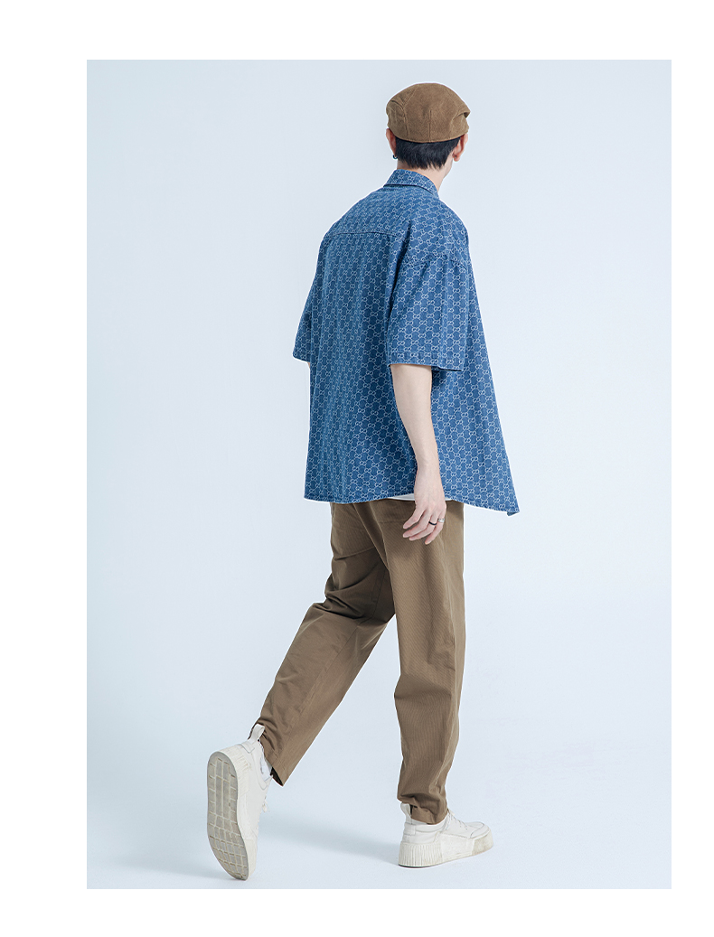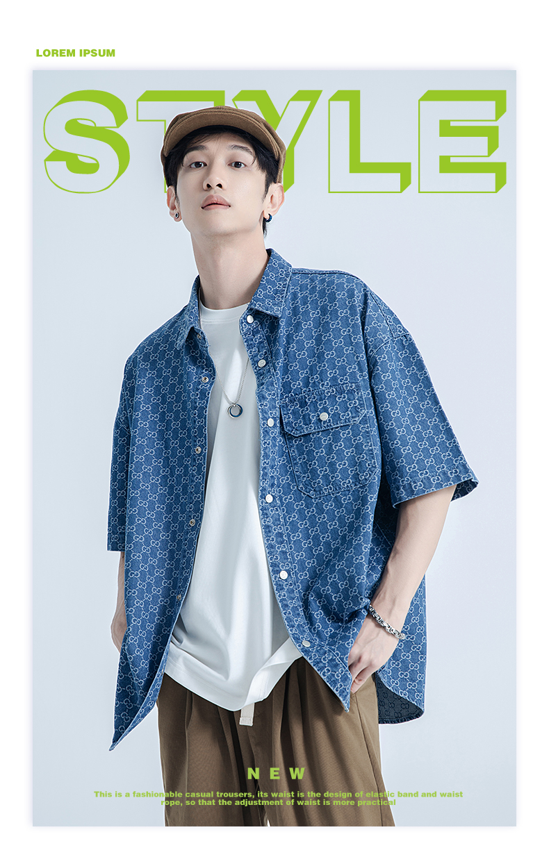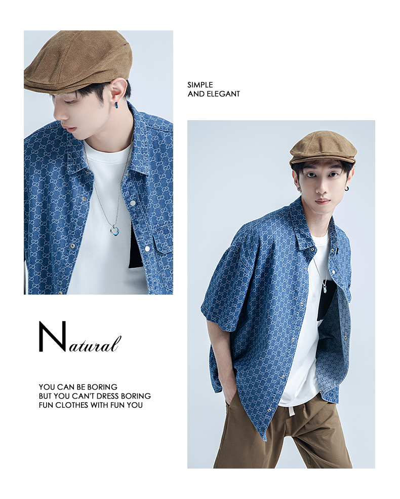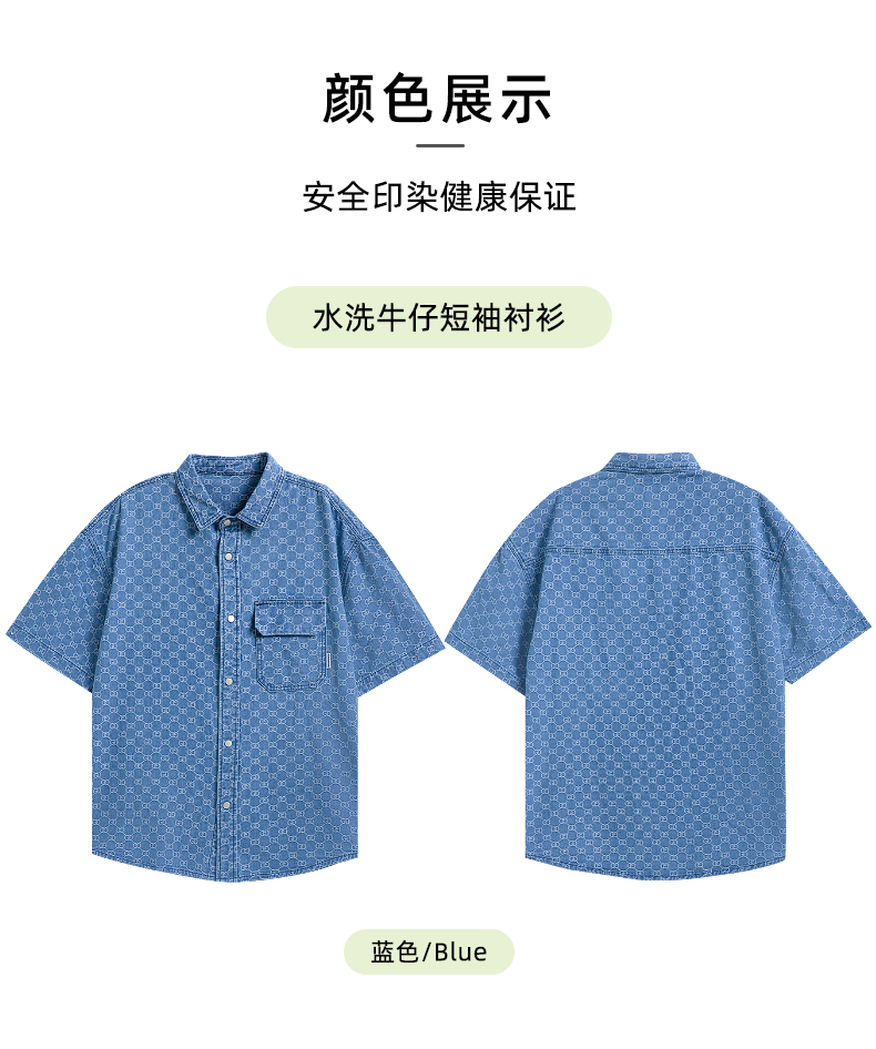 【断码清仓】HX 春夏季水洗牛仔短袖衬衫/Z103320021101