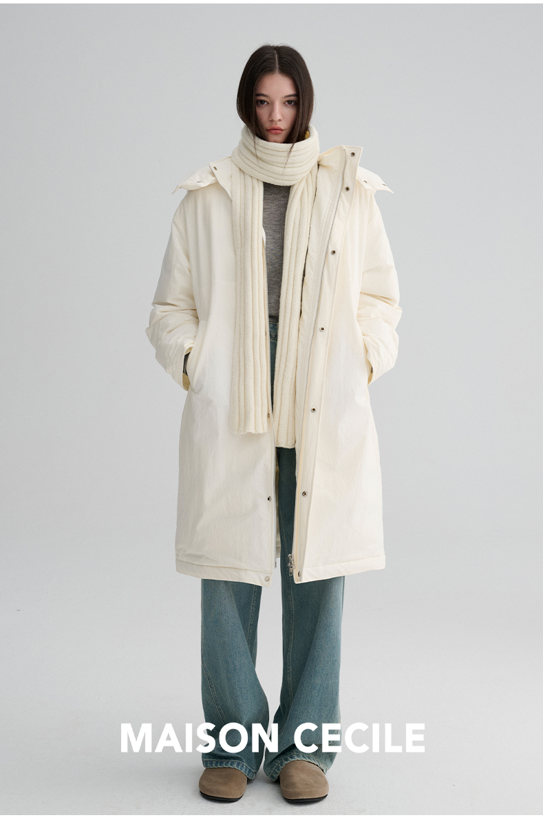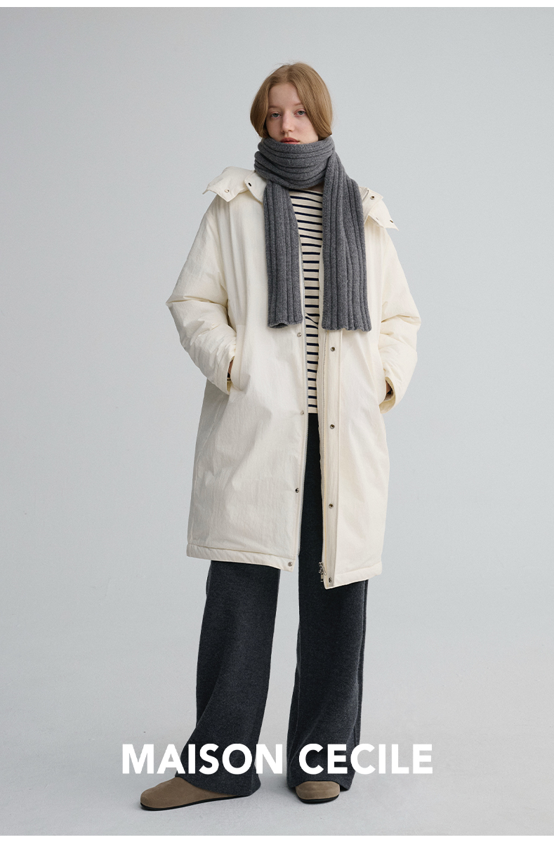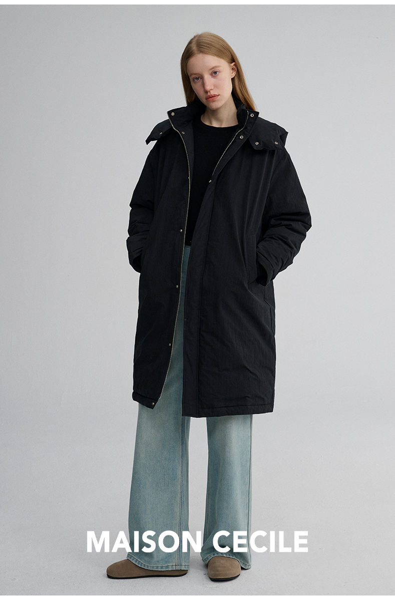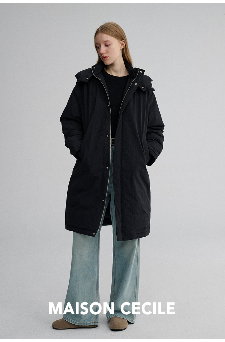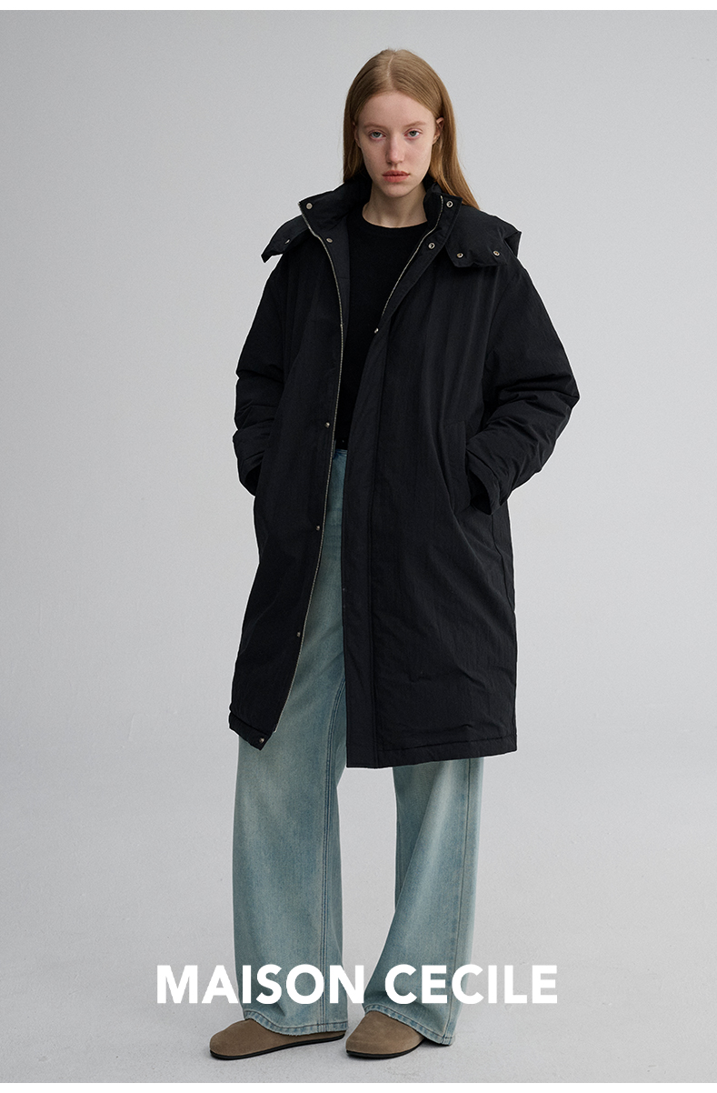 MAISON CECILE 90白鹅绒轻盈保暖厚实舒适过膝长款连帽羽绒服外套