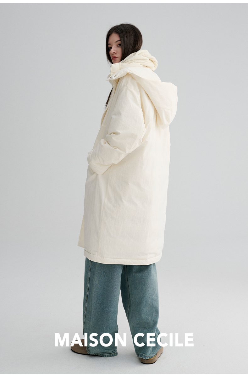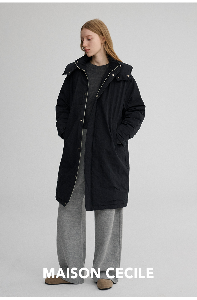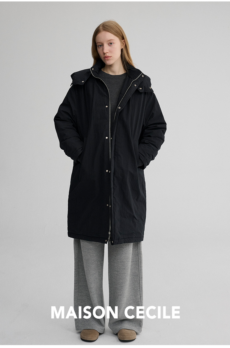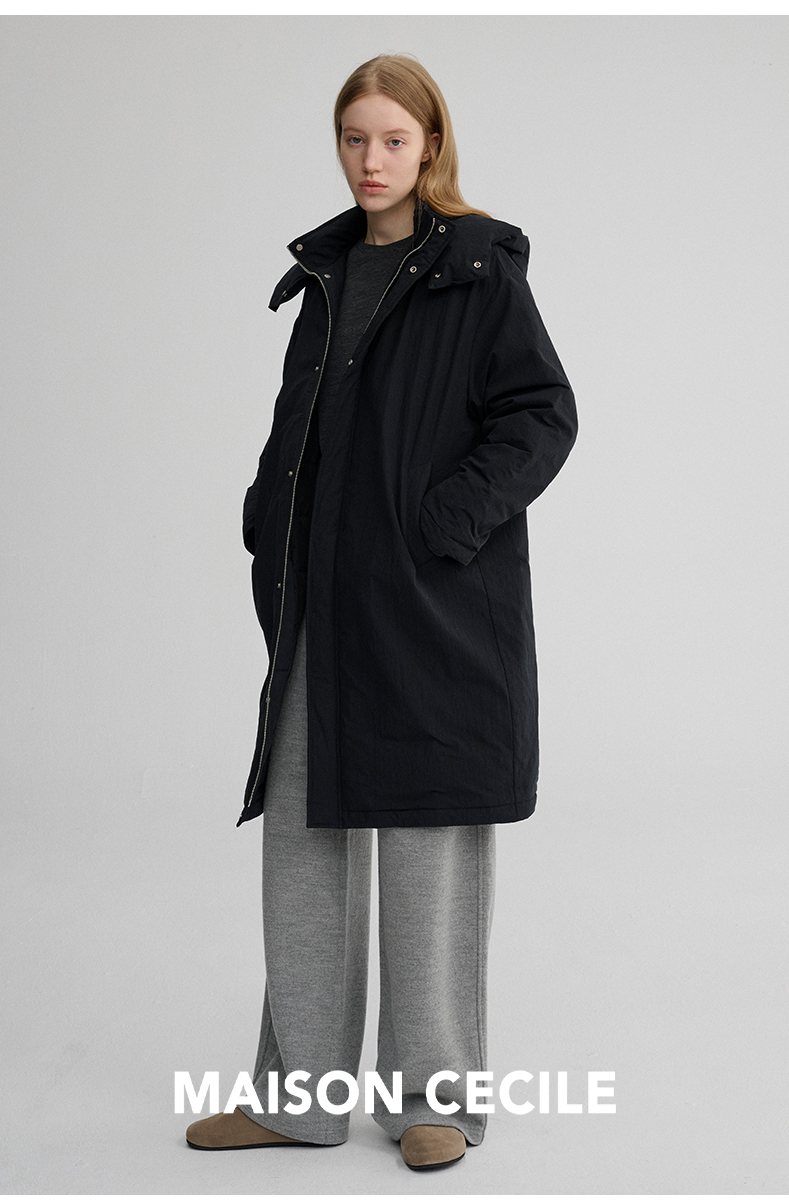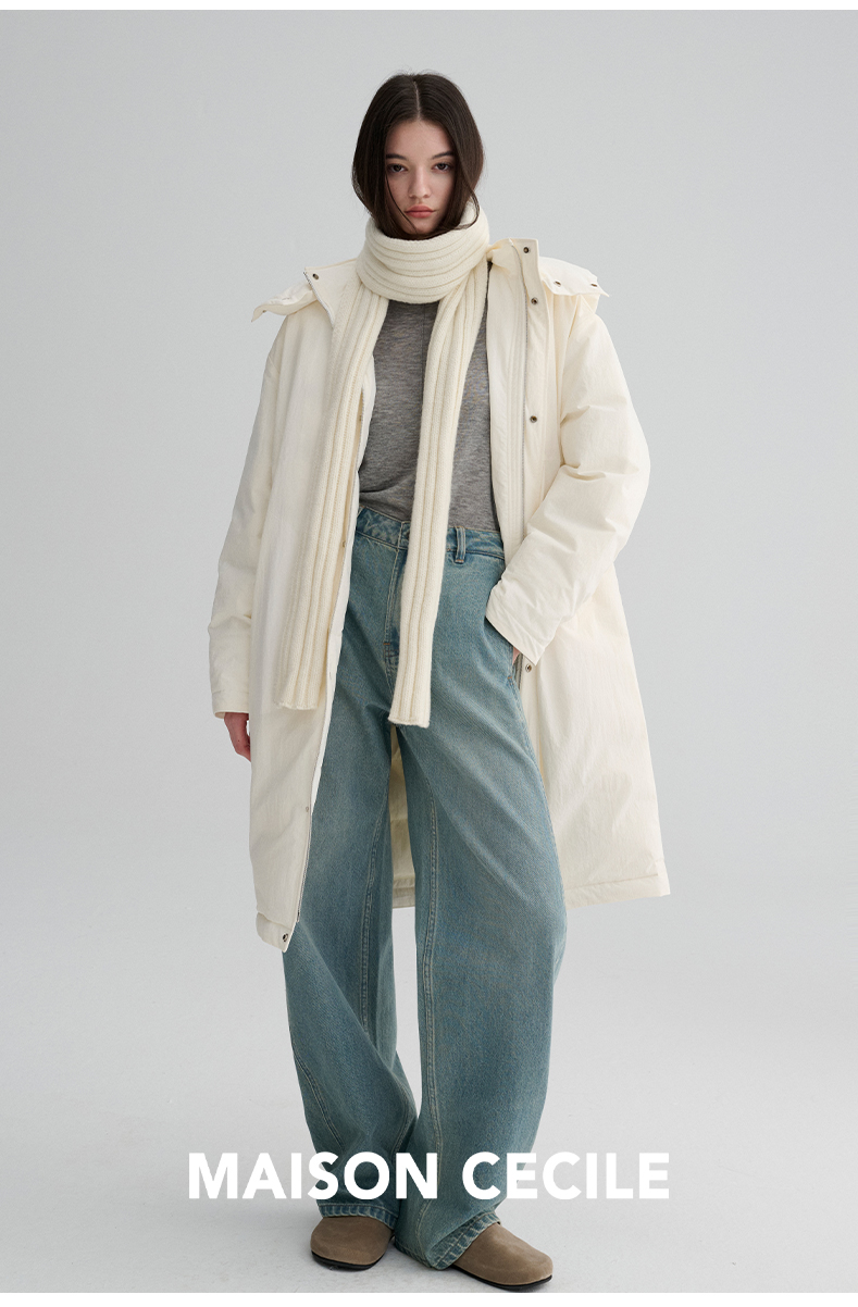 MAISON CECILE 90白鹅绒轻盈保暖厚实舒适过膝长款连帽羽绒服外套