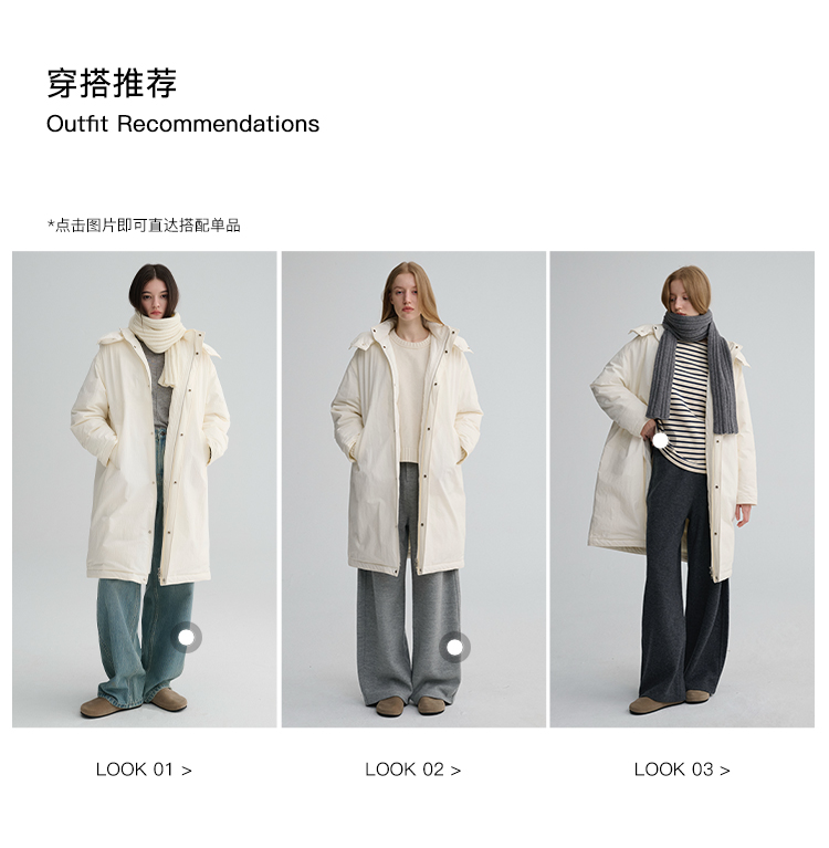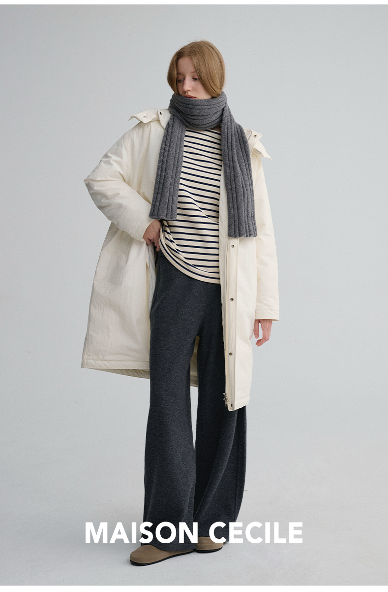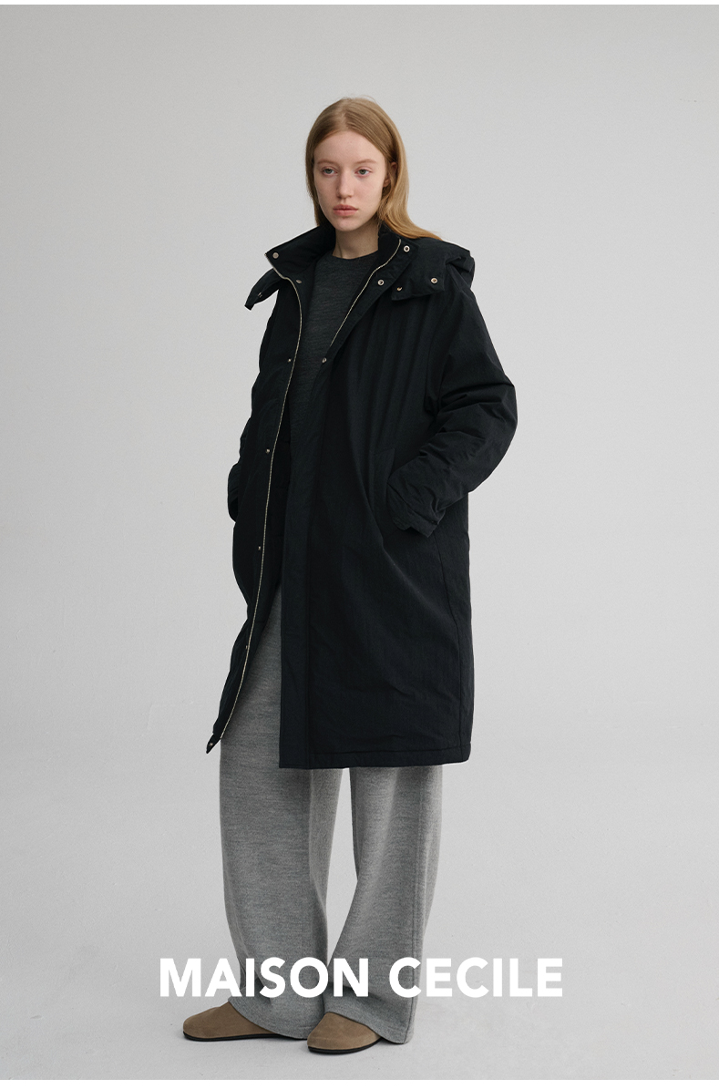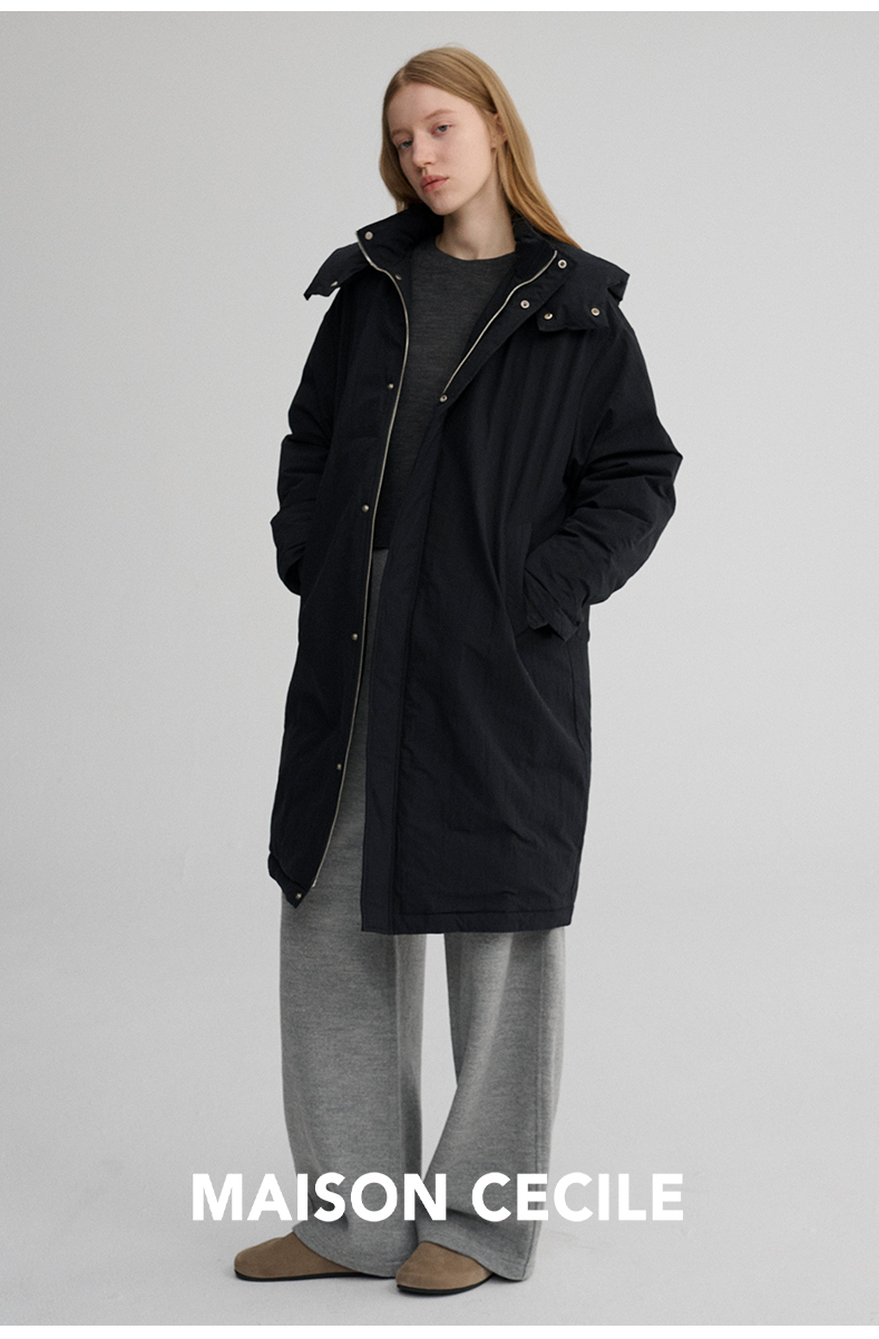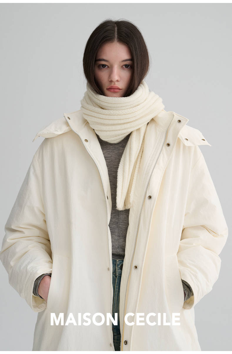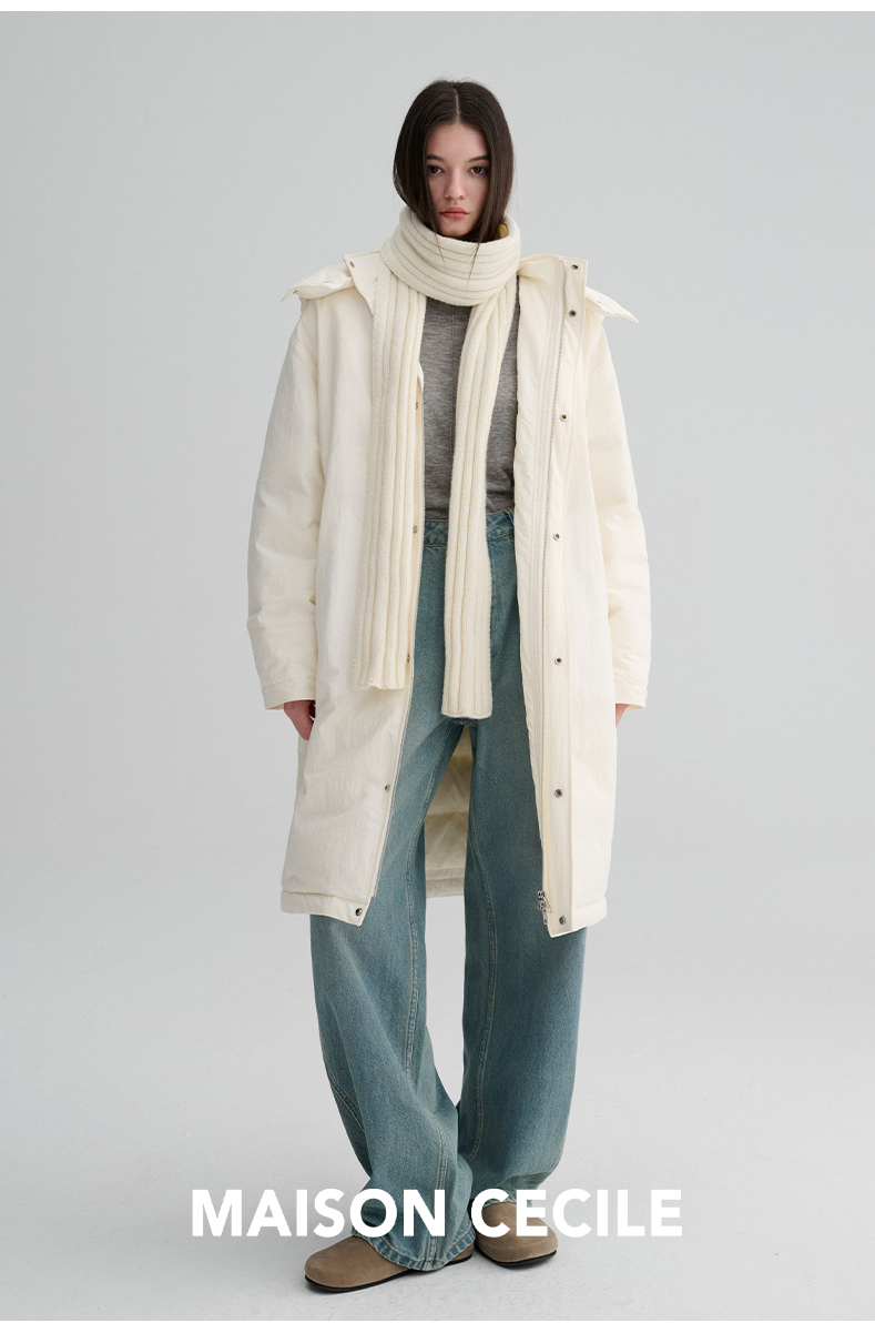MAISON CECILE 90白鹅绒轻盈保暖厚实舒适过膝长款连帽羽绒服外套