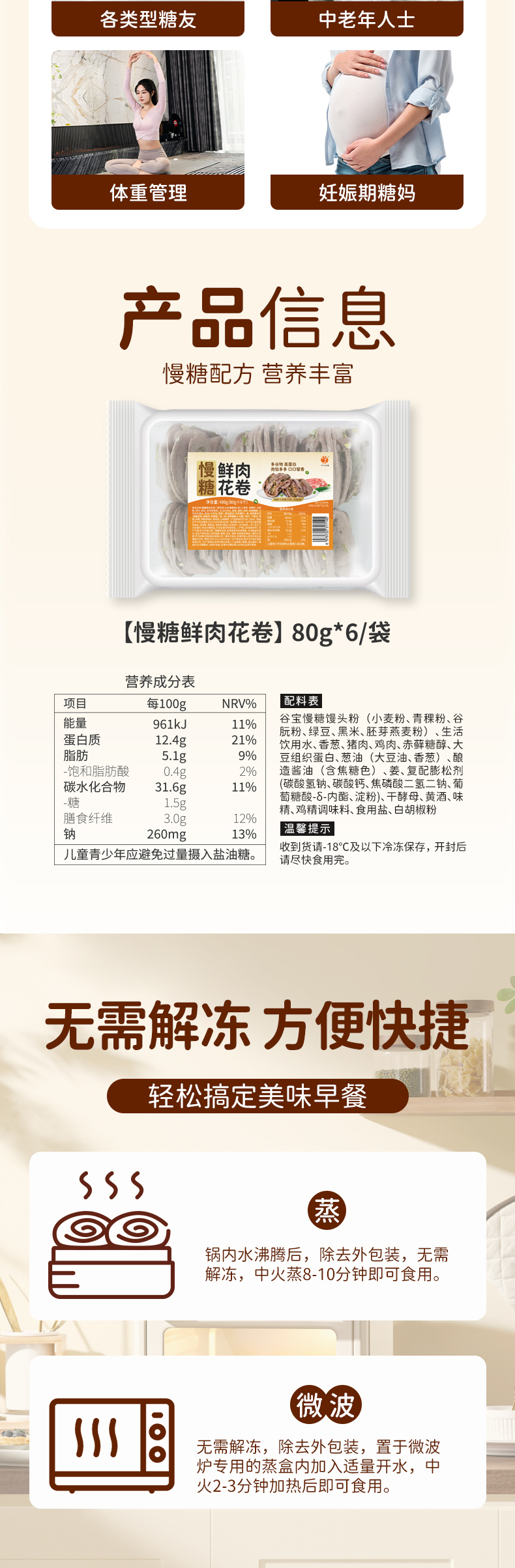 慢糖鲜肉花卷3袋(每袋80g*6只)