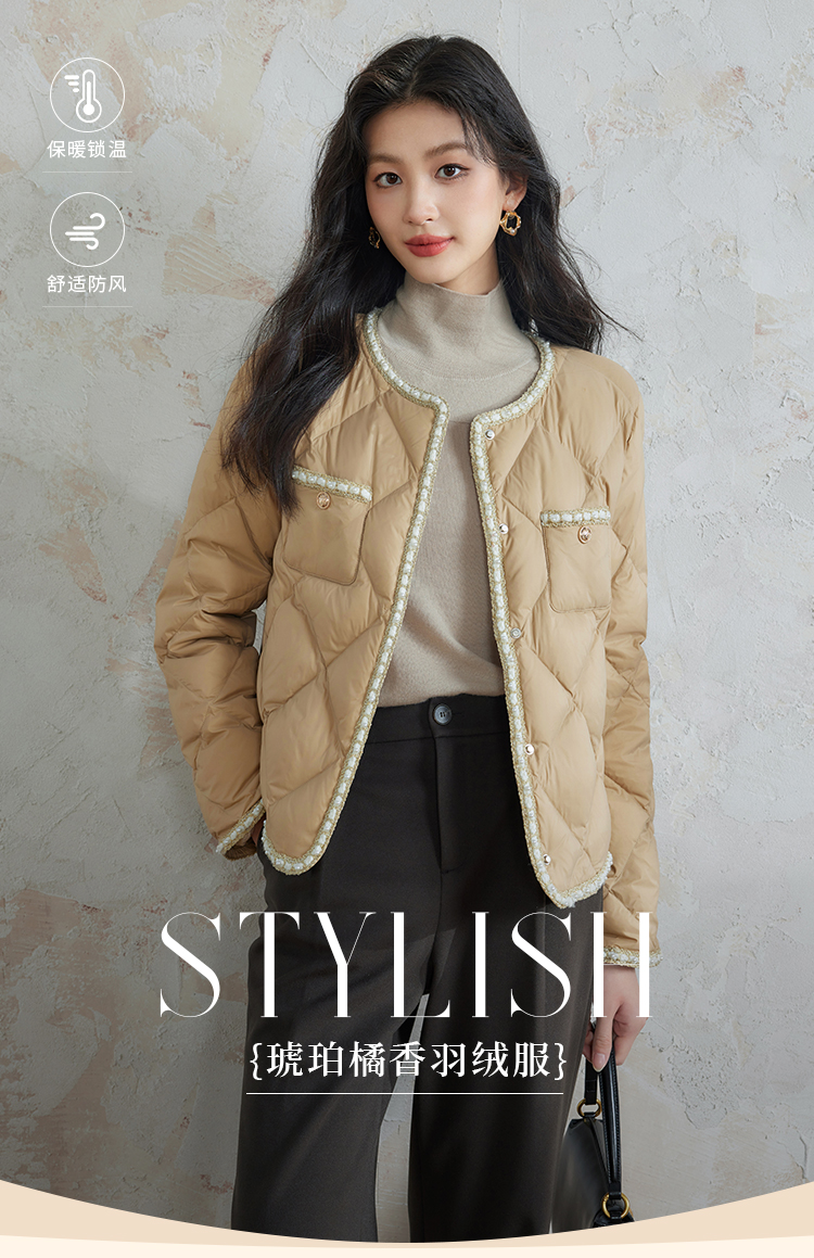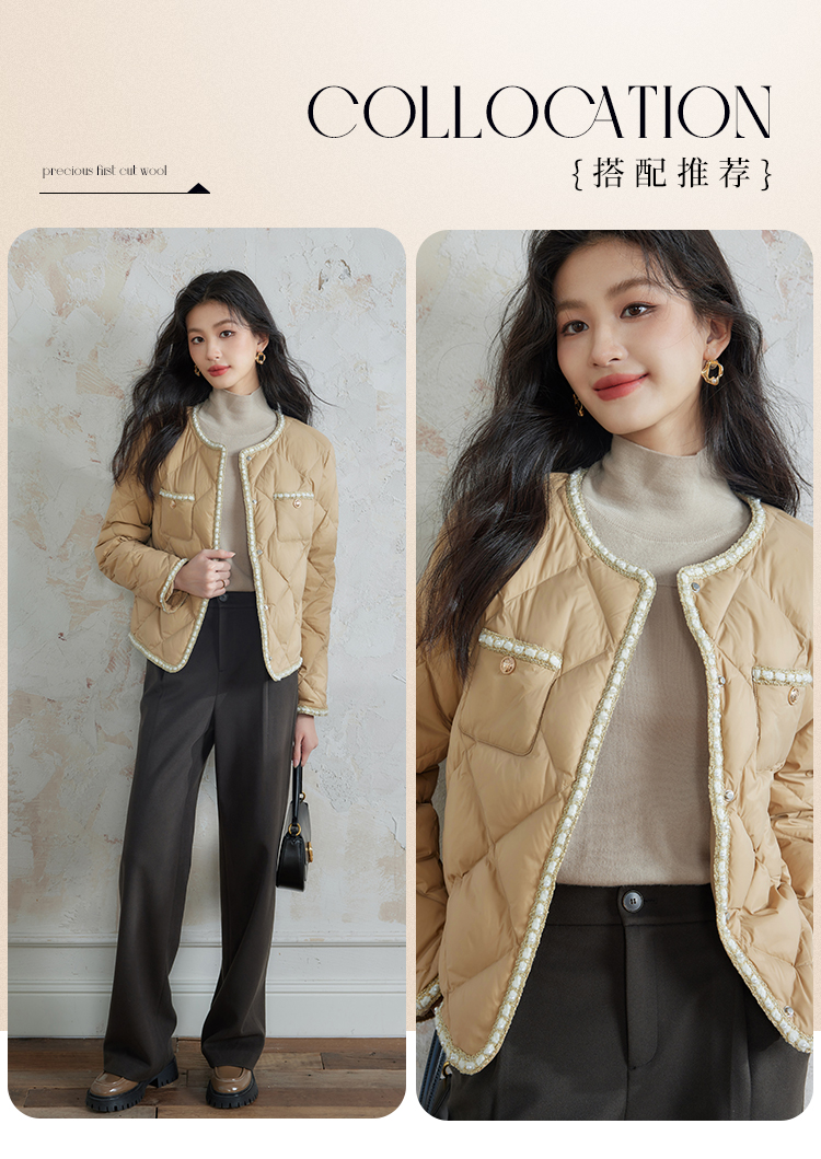 【149元福袋,不支持退换】熙世界美拉德小香风轻薄羽绒服女冬季白鸭绒短款外套