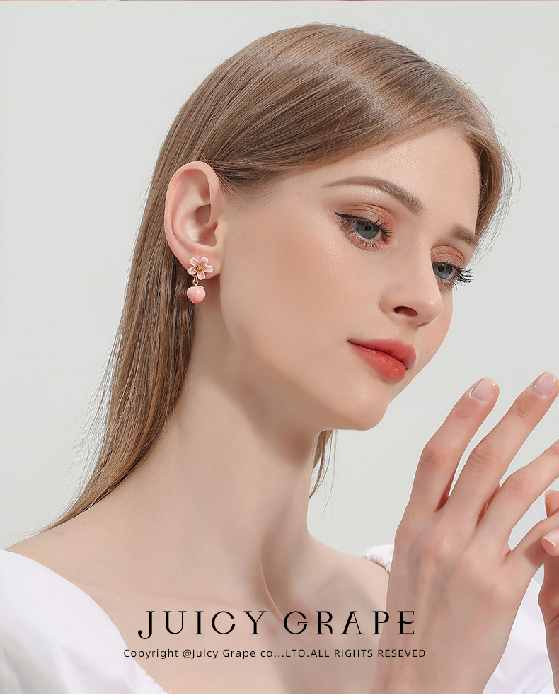 Juicy Grape 水蜜桃耳环女夏季款甜美可爱设计感桃花耳坠气质耳钉桃子耳饰耳夹