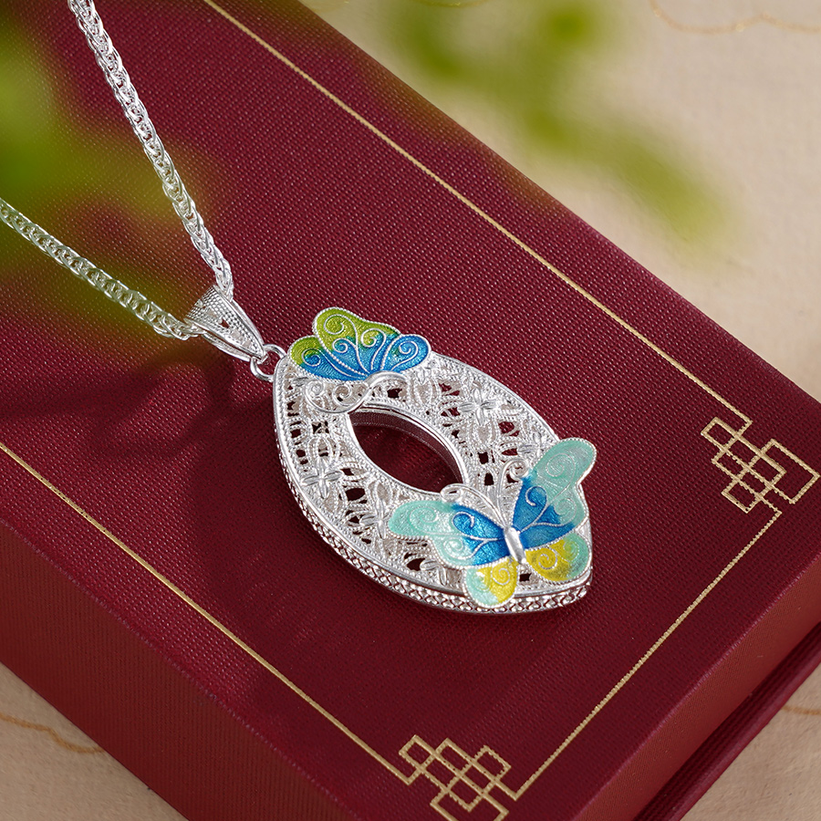 【寓意】:吊坠以蝴蝶为灵感设计,通过银花丝工艺缠绕编织,打造呼吸感镂空纹理,寓意传递幸福与美好。
