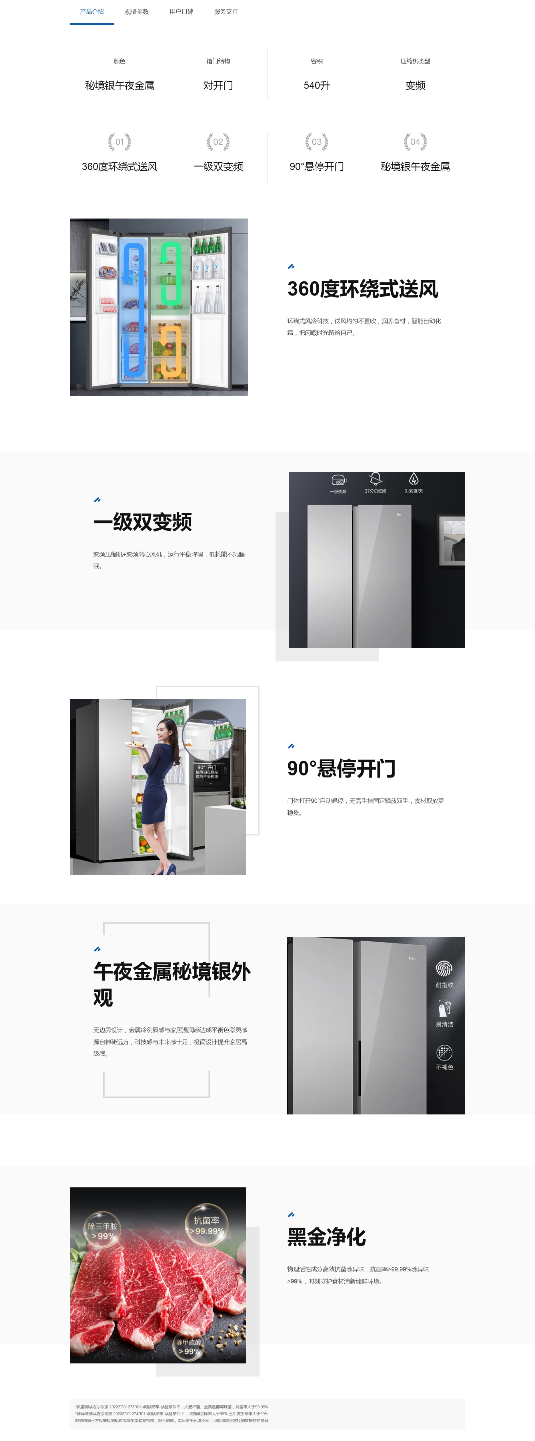 海尔 冰箱 BCD-540WGHSSEDRM 540升 对开门 风冷 变频 一级能效 一级双变频 彩晶面板 秘境银午夜金属