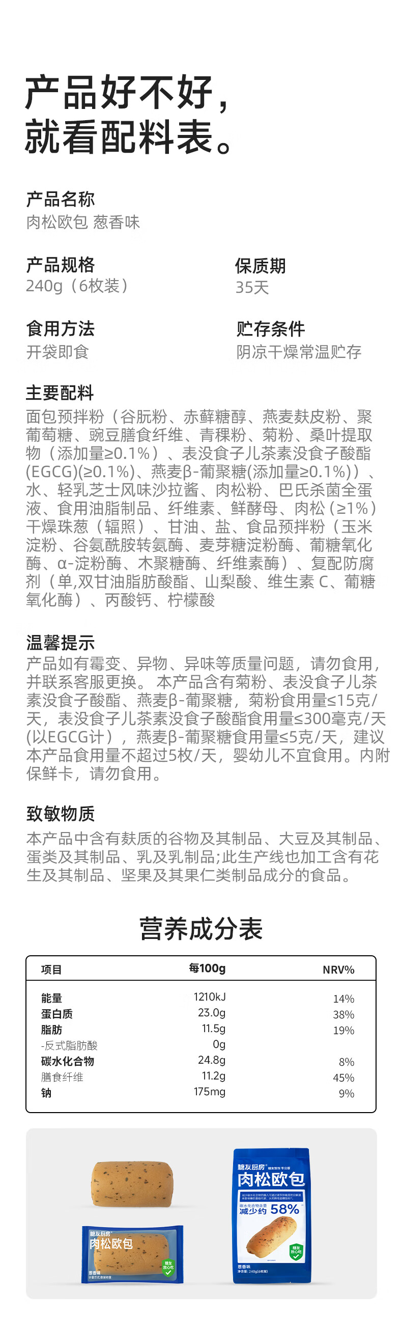 【分仓直发包邮】糖友厨房葱香肉松欧包240g*2袋