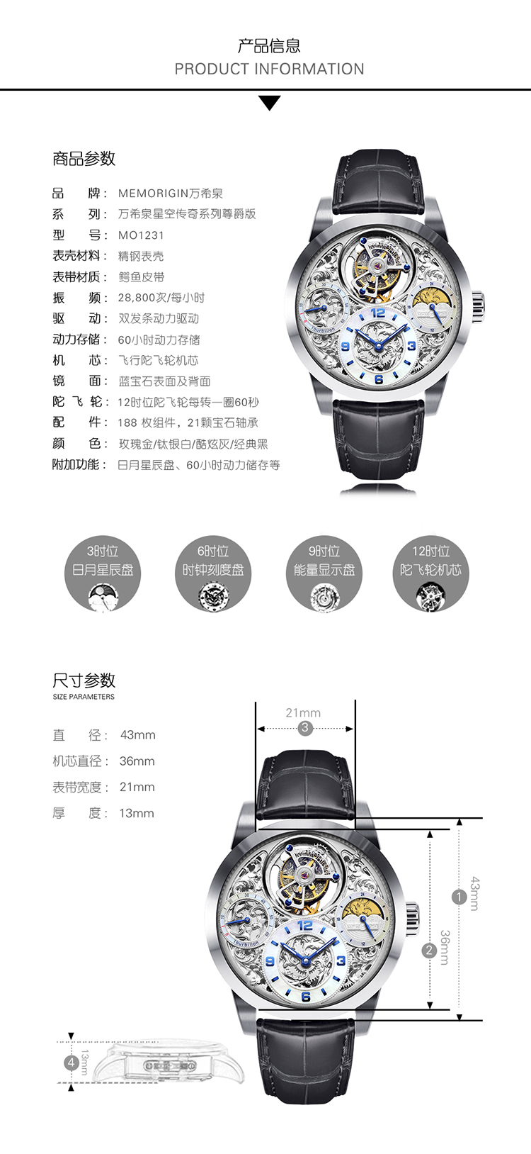 MEMORIGIN万希泉星空传奇系列尊爵版陀飞轮腕表男士时尚机械手表