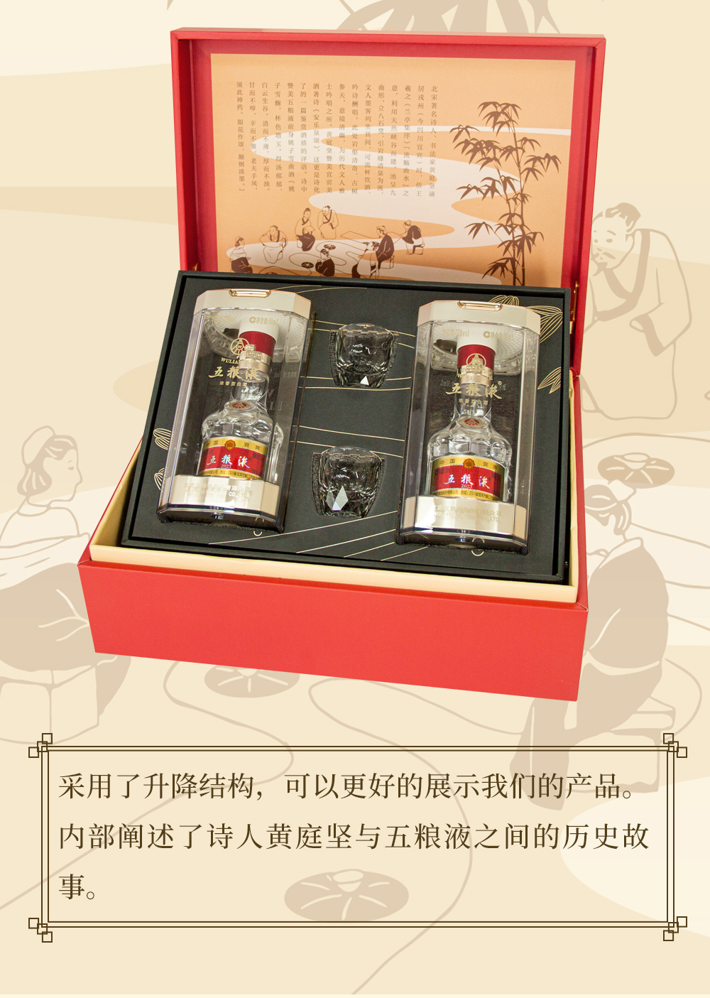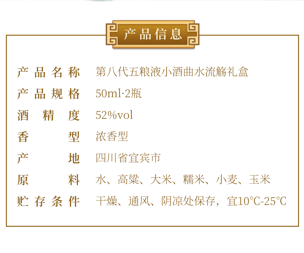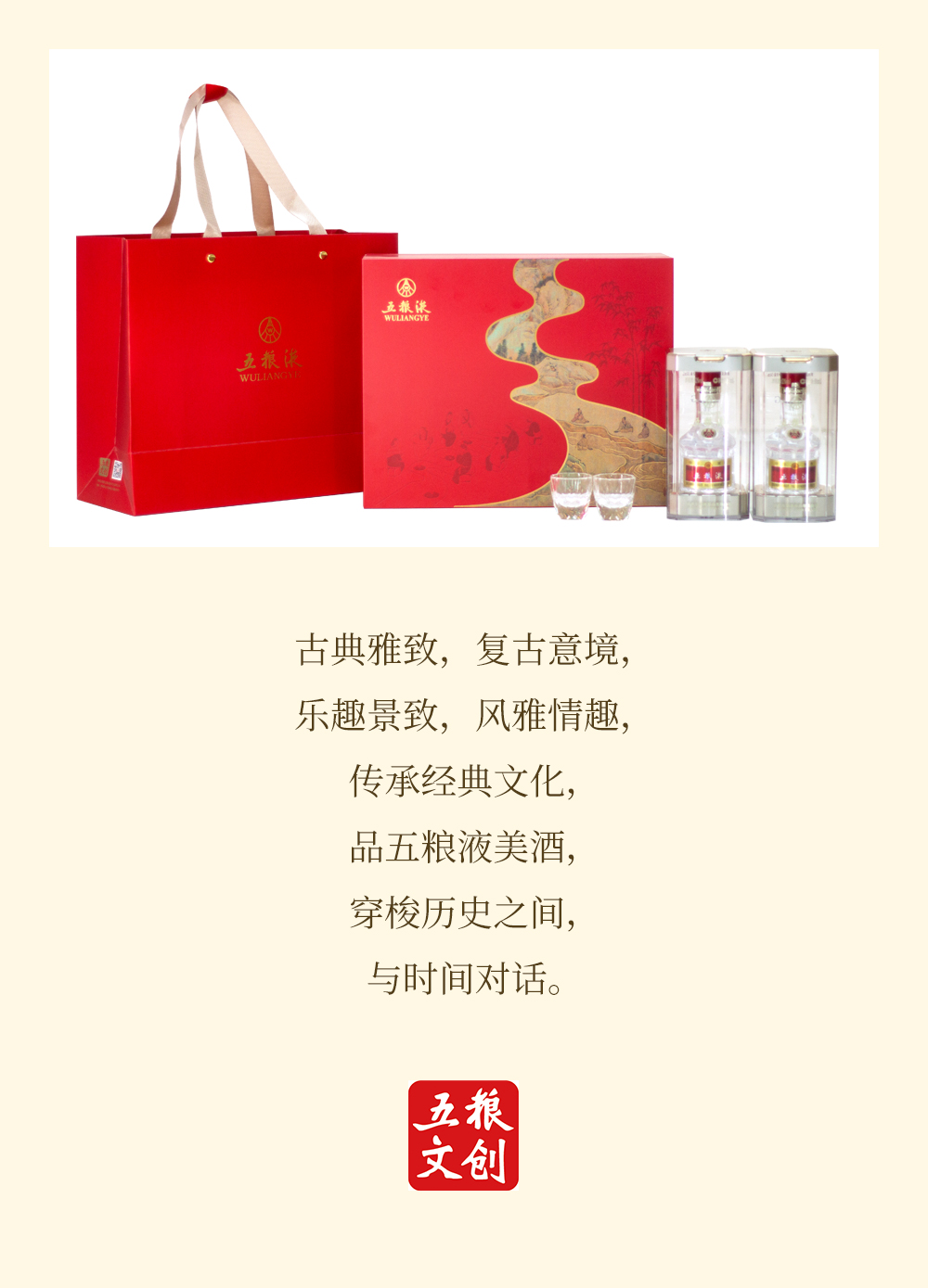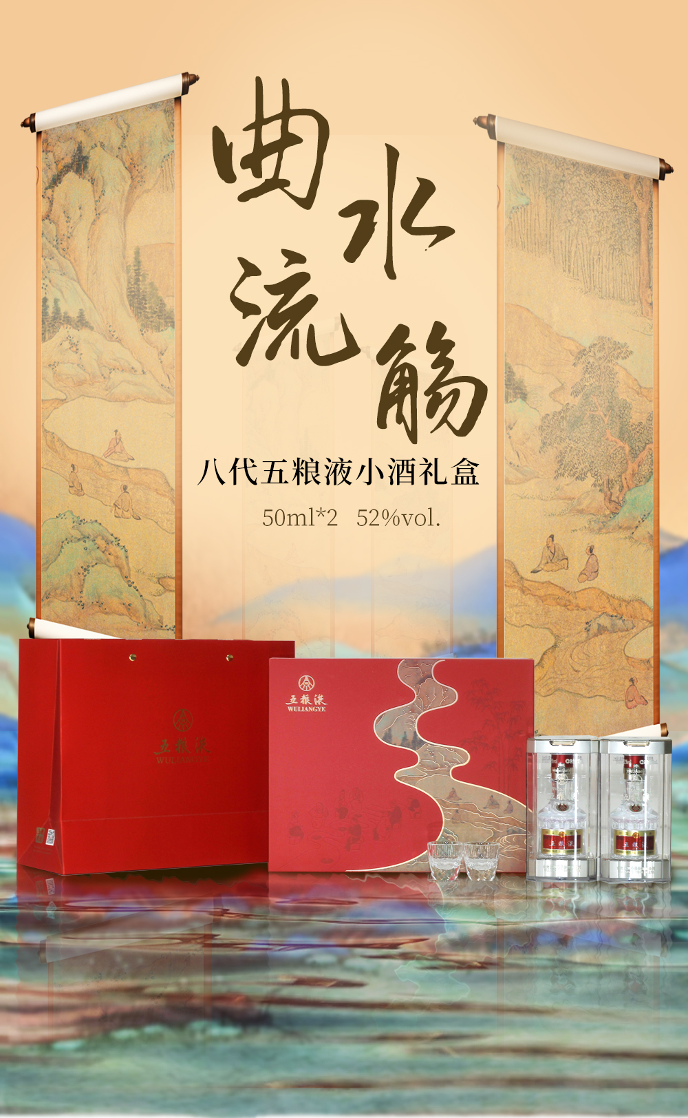 五粮液·八代系列·曲水流觞套装礼盒(内含第八代五粮液 52度 50mLx2瓶;酒杯x2个)*1套