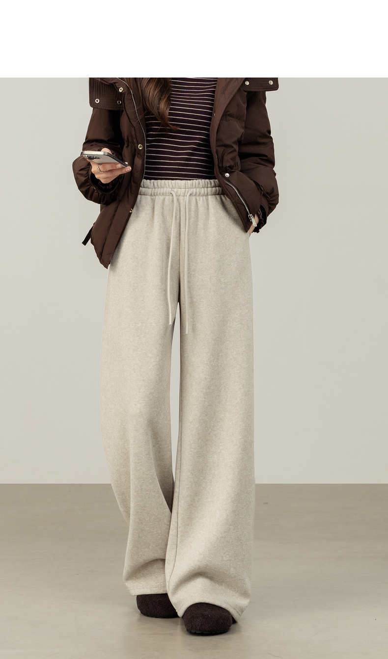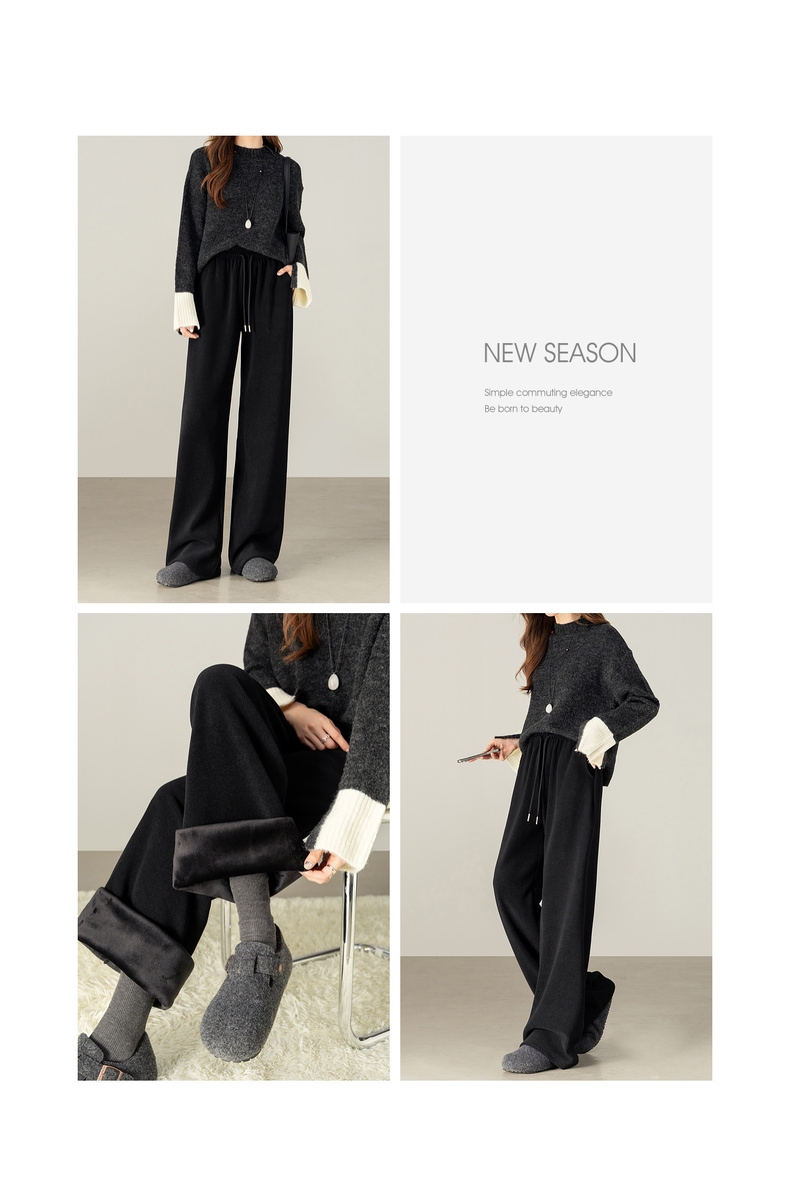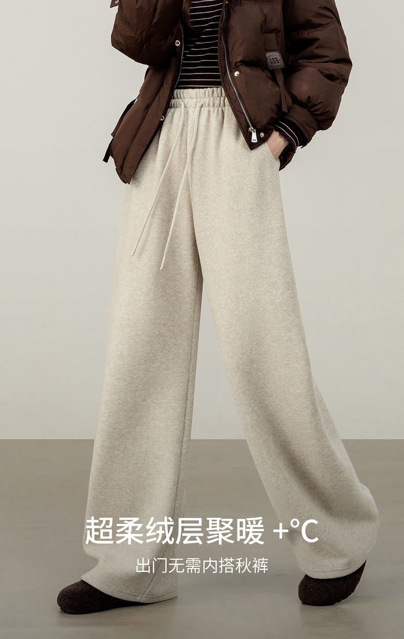 【内购】【聚暖裤】简约休闲抽绳松紧腰加绒御寒保暖不臃肿针织直筒长裤-154K80281