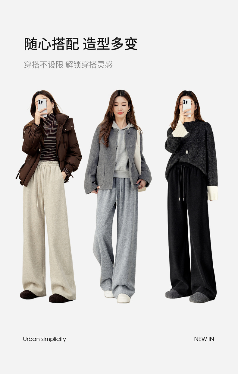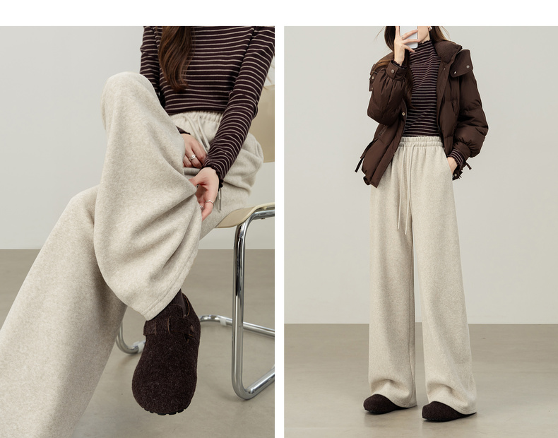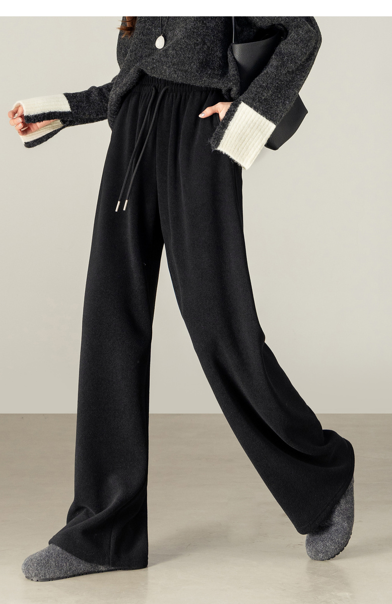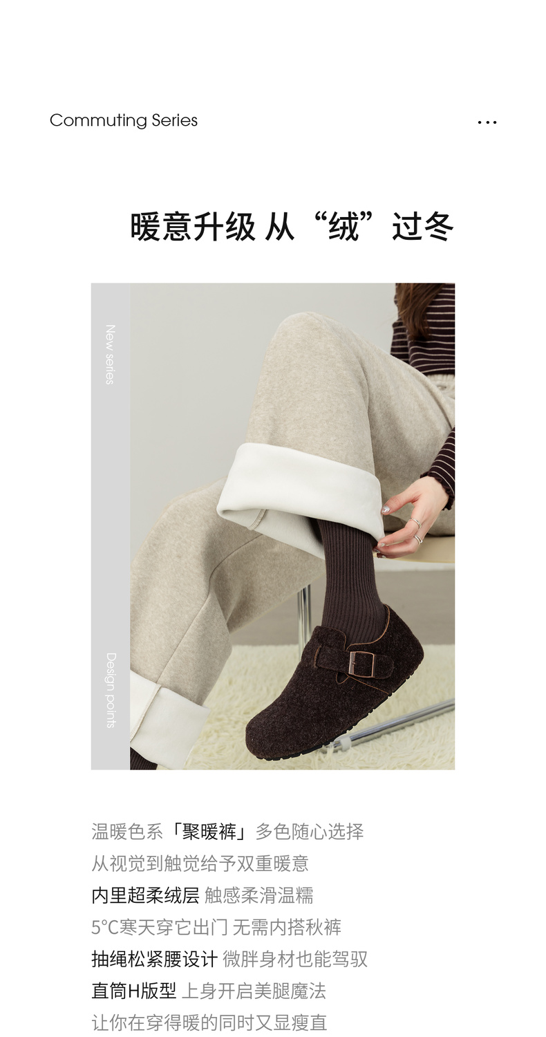 【内购】【聚暖裤】简约休闲抽绳松紧腰加绒御寒保暖不臃肿针织直筒长裤-154K80281
