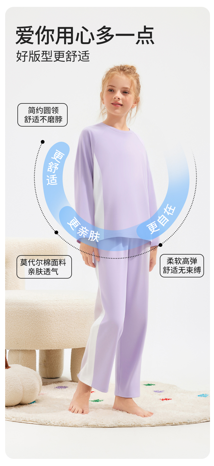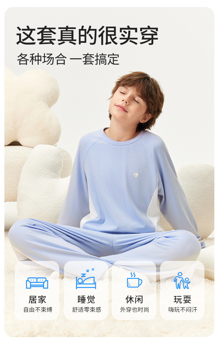 【纳维凯尔】【120-165】【莫代尔棉】男女童春夏睡衣套装