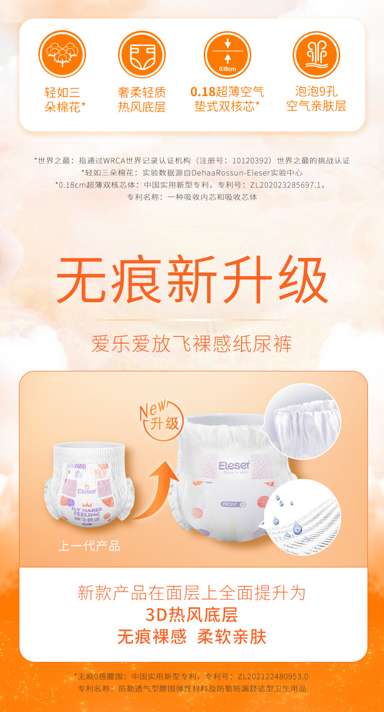【露安适提供技术支持】爱乐爱放飞裸感纸尿裤乐动裤NB/S/M/L/XL/XXL/XXXL码透气无痕宝宝尿不湿