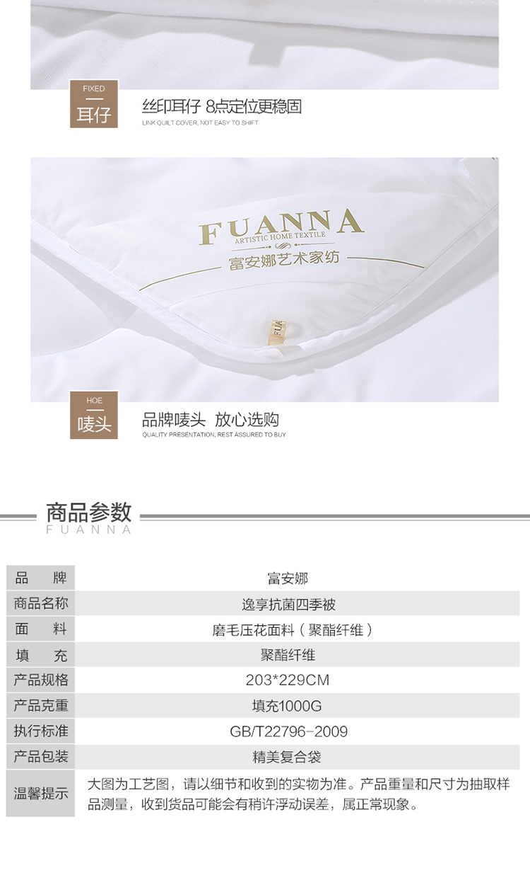 富安娜 逸享抗菌四季被 203*229cm 1000g