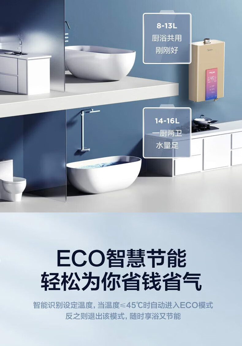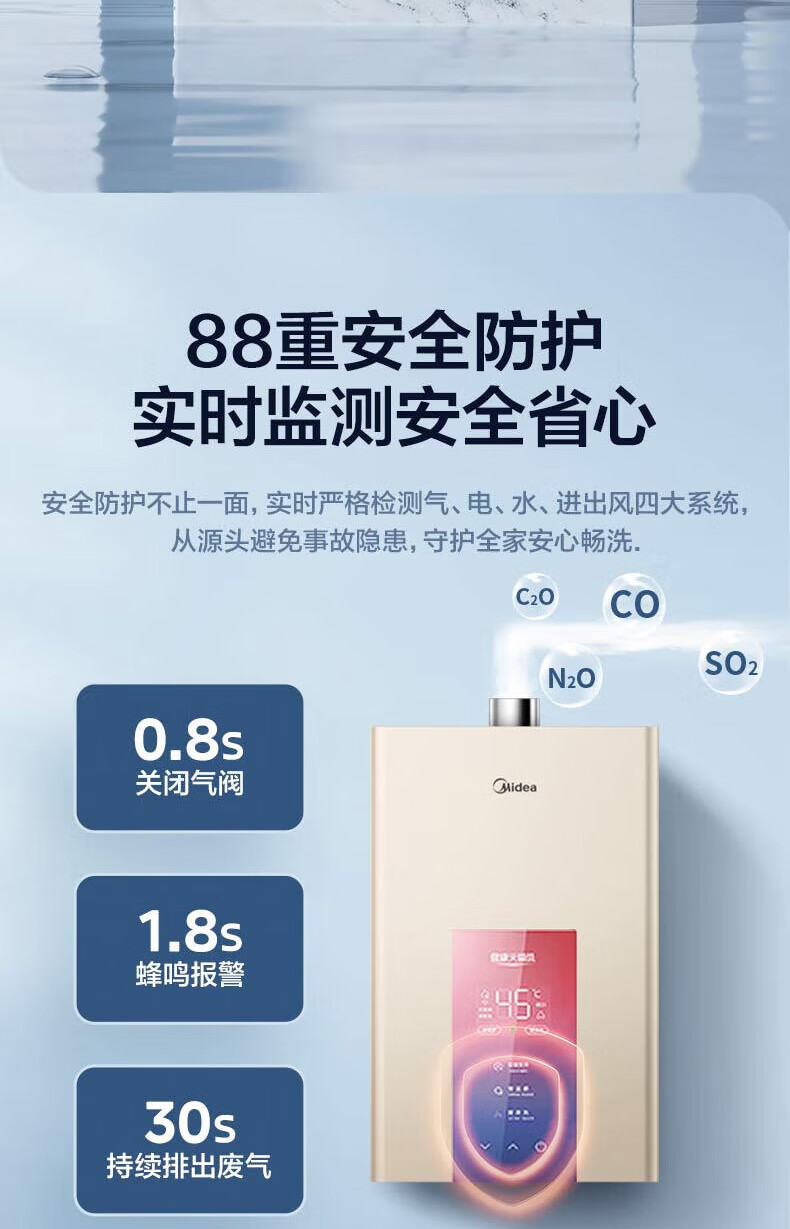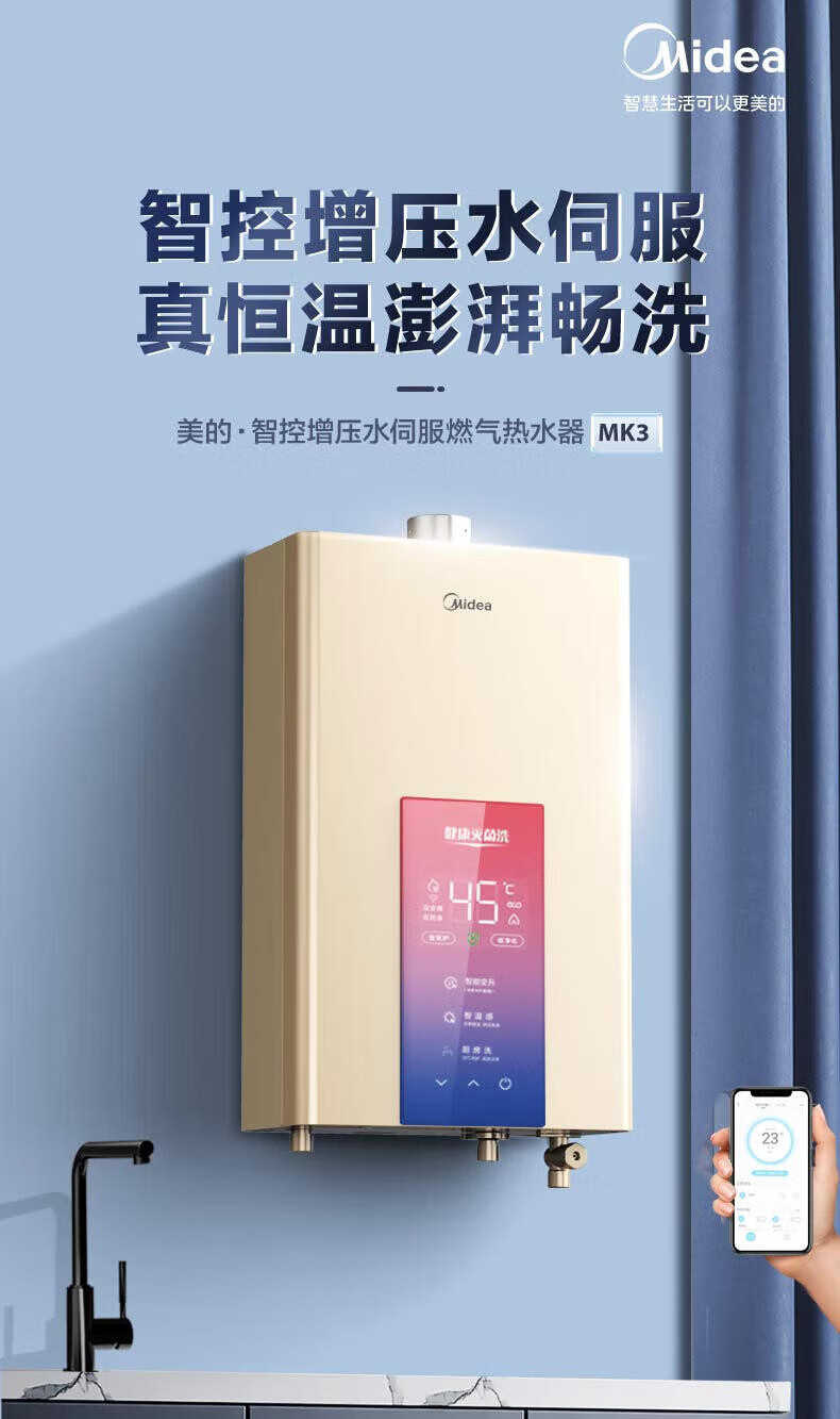 美的(Midea)燃气热水器天然气热水器智控增压水伺服恒温磁净化健康洗ECO节能安全防护以旧换新上门安装MK3系列 多点用水无干扰16升JSQ30-MK3 旗舰水伺服
