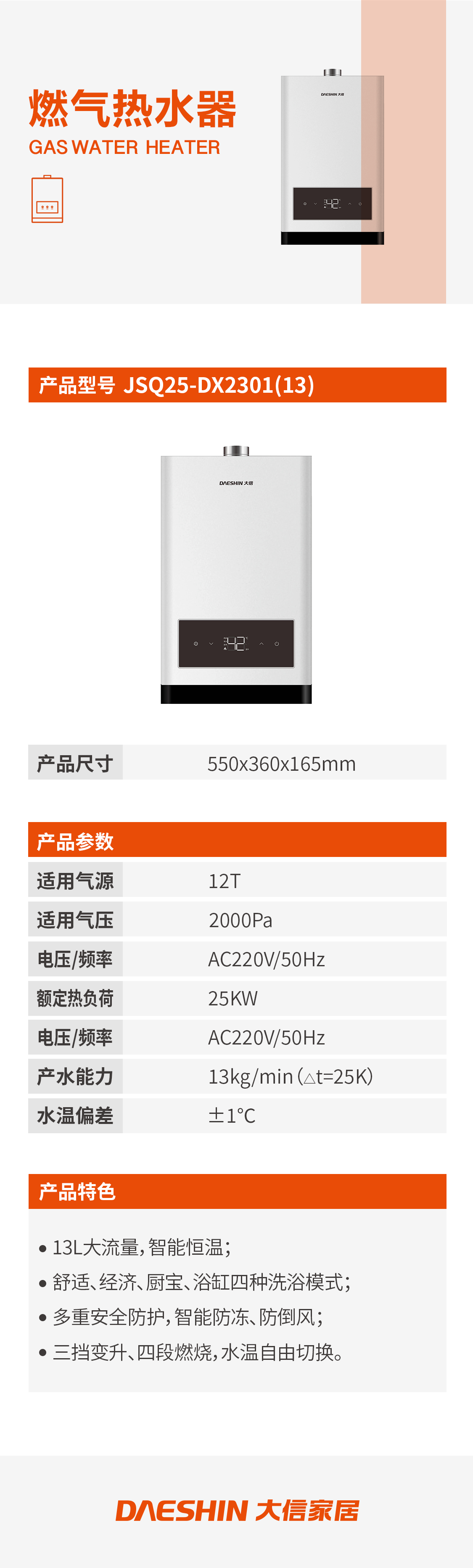 新品首发/大信燃气热水器 JSQ25-DX2301(13)