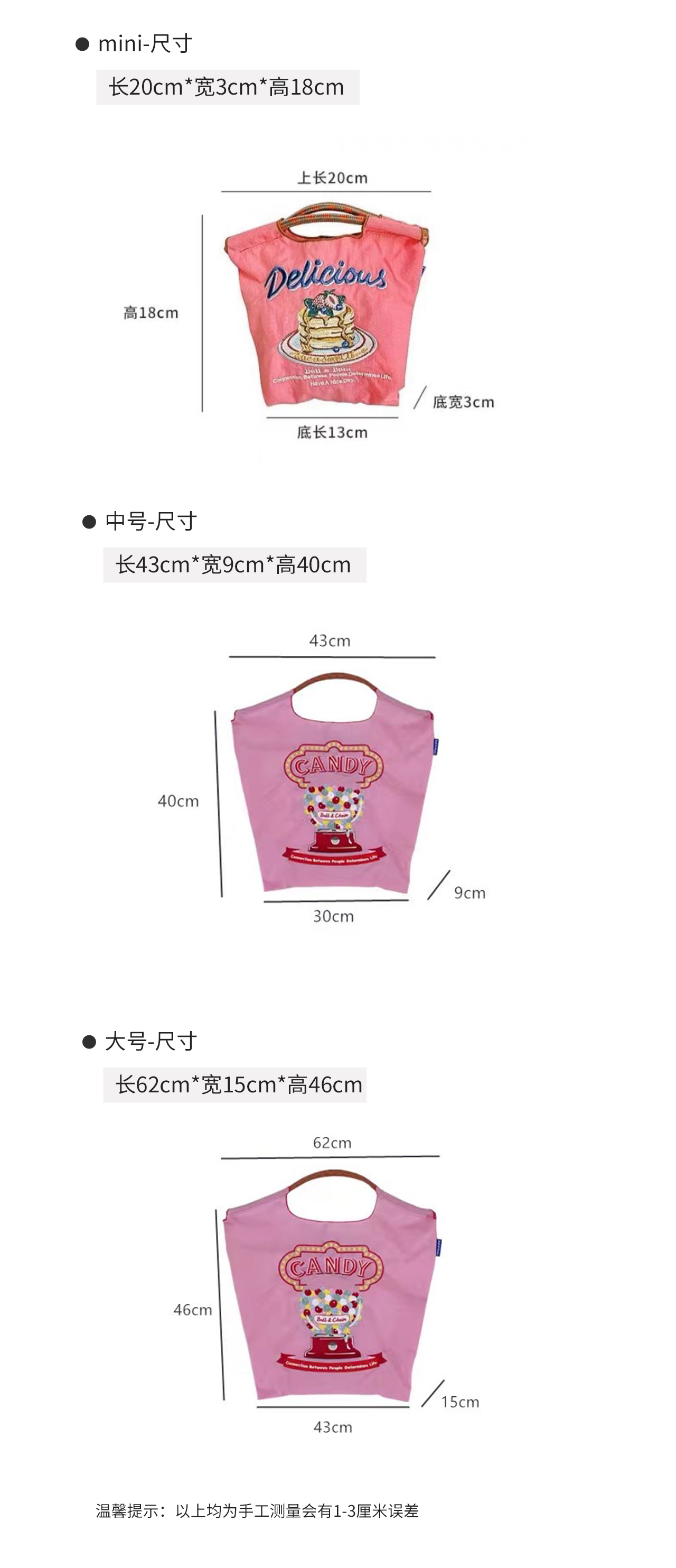 包包一共三个尺寸,大号、中号、mini款