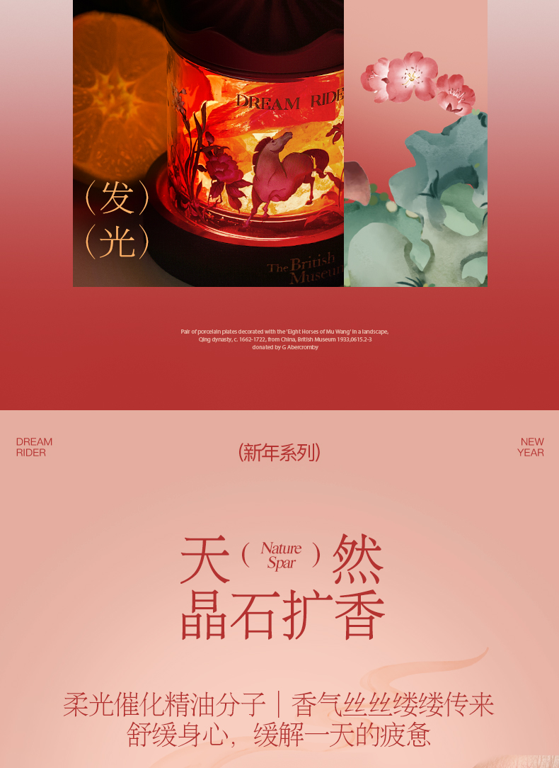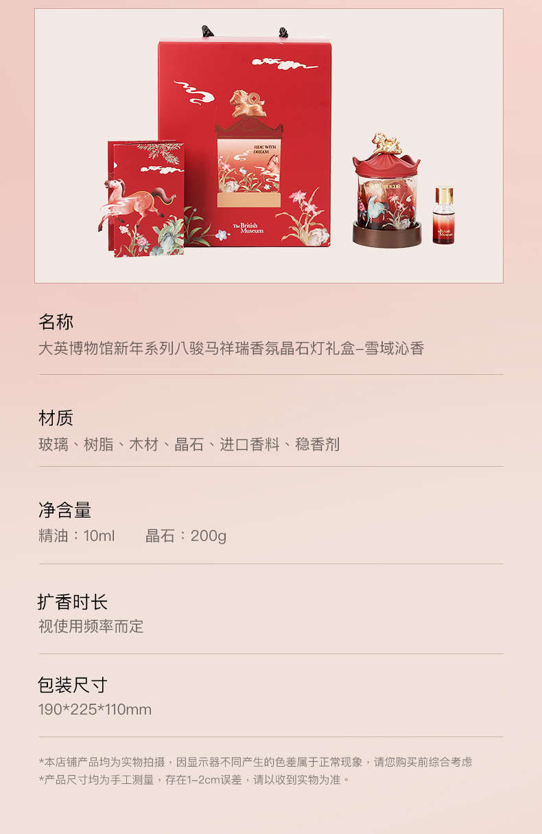 大英博物馆 新年系列 八骏马祥瑞香氛晶石灯礼盒-雪域沁香