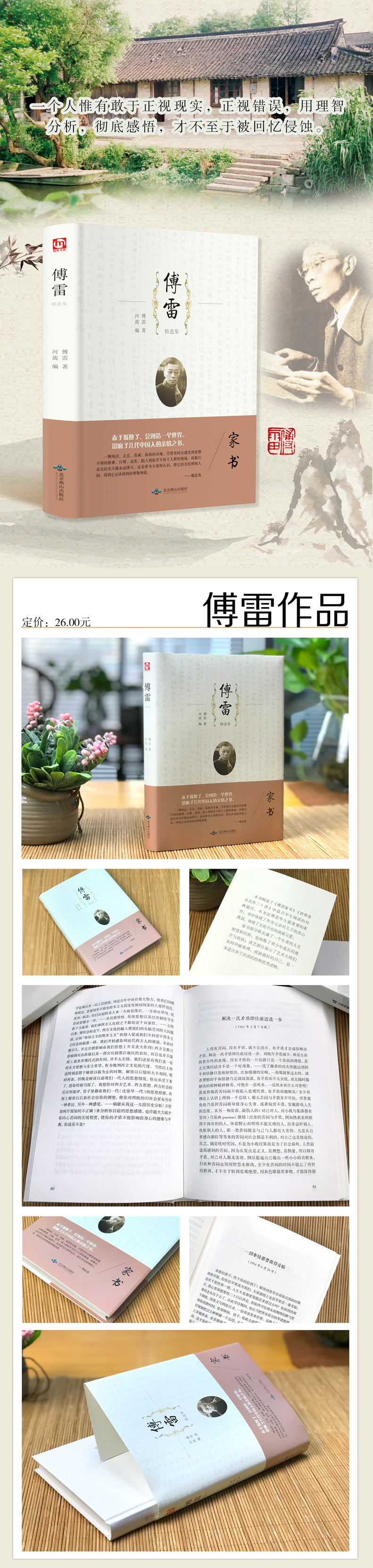 《傅雷精选集》精选了《傅雷家书》《世界美术名作二十讲》中适合学生阅读的经典篇同。《傅雷精选集》是傅雷毕生重要的著作,书中体现了作为父亲对儿子的苦心孤诣,体现了无处不在的浓浓父爱。家书部分既充满了一个长者的人生智慧和经验,也细数了青少年成长的迷茫与欢欣;谈艺部分展示了艺术大师们如何冲破束缚,成就好的自己。是一本适合亲予共读的经典优秀读物。