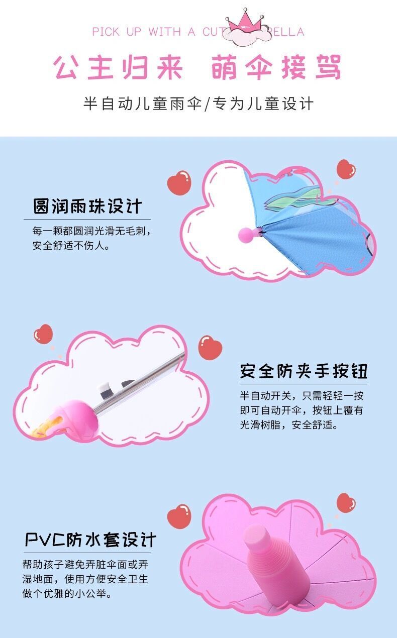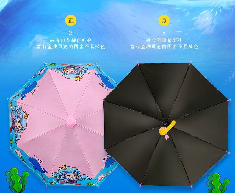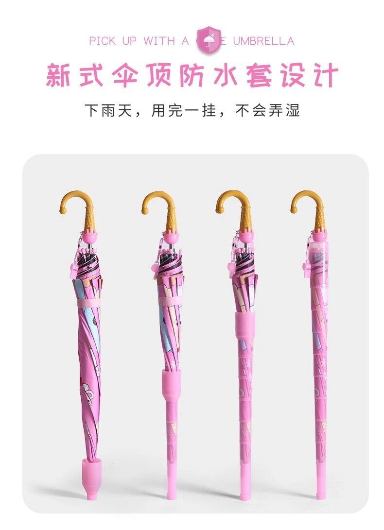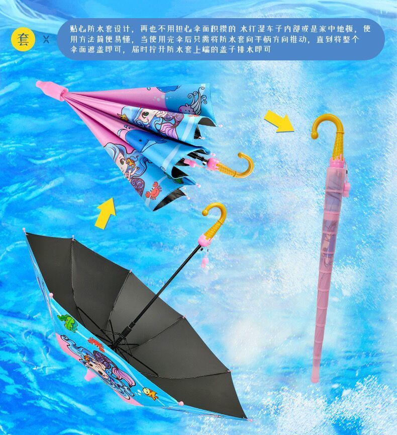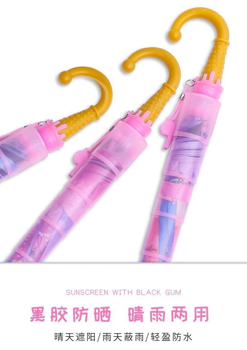 抖音同款儿童自动黑胶防紫外线轻便晴雨伞防水套男女学生卡通公主长柄雨伞