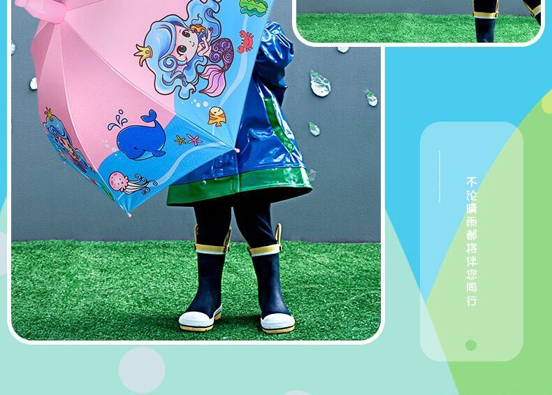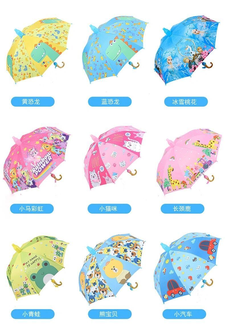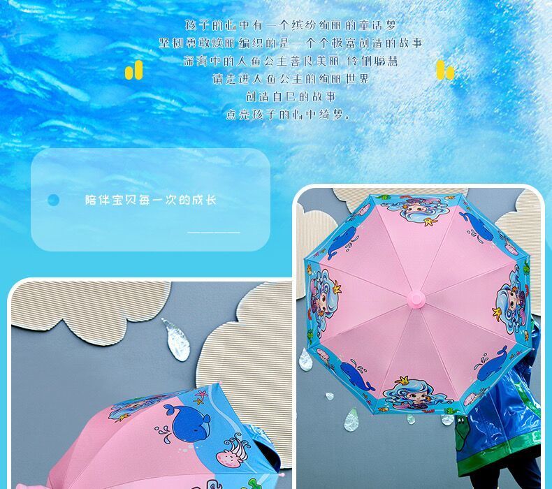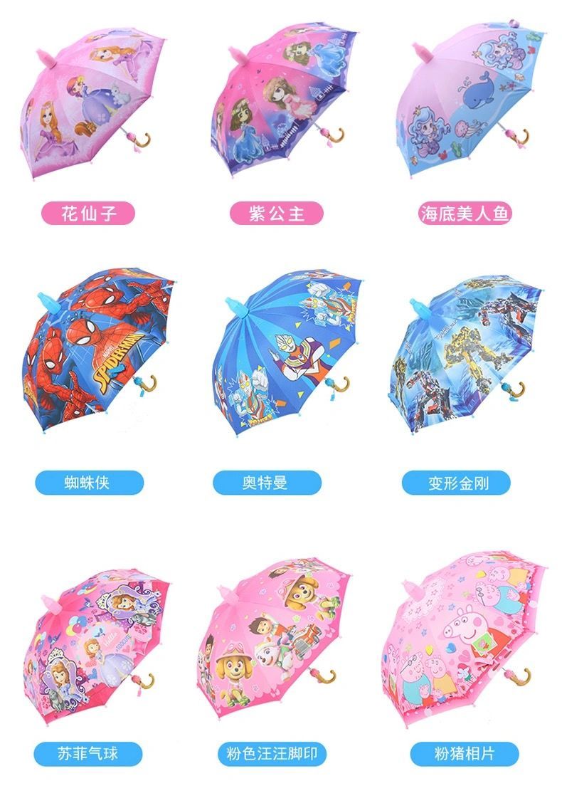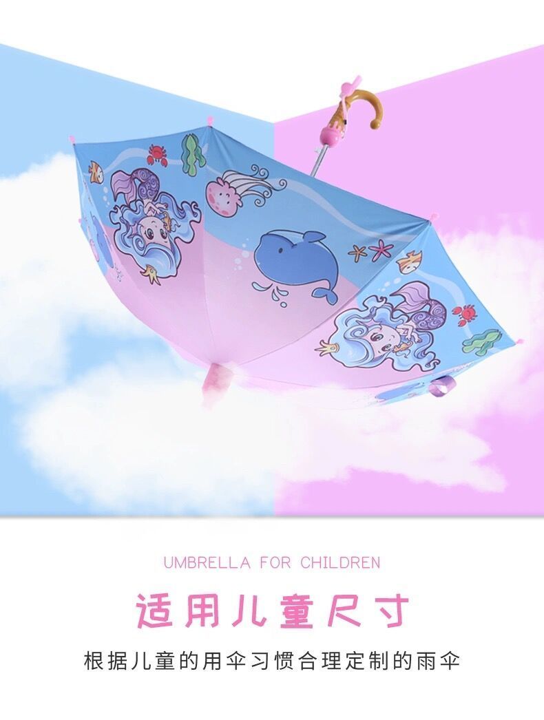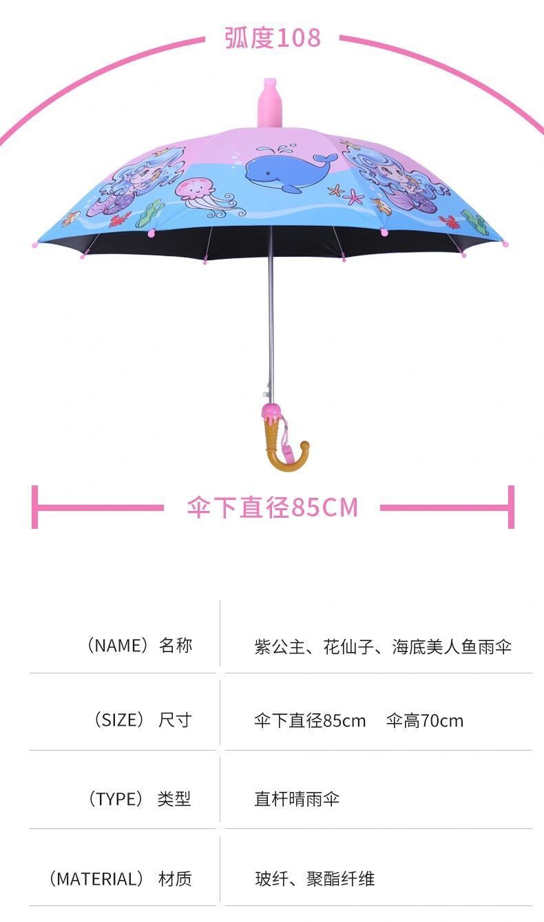 抖音同款儿童自动黑胶防紫外线轻便晴雨伞防水套男女学生卡通公主长柄雨伞