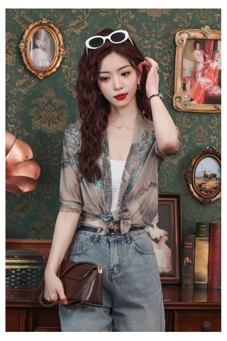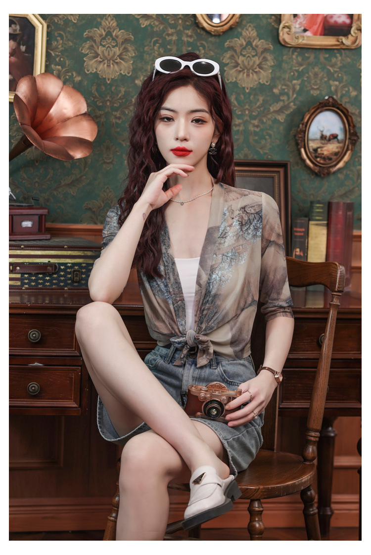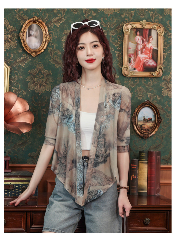 网纱印花开衫披肩防晒衣KQL-E001M6993